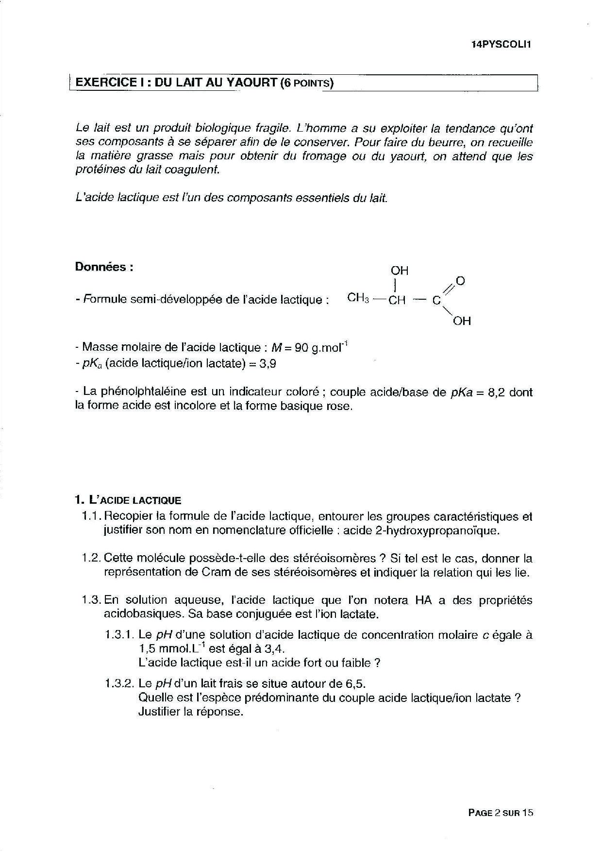 Bac S Physique Chimie (Spécialité) Liban 2014 - Sujet