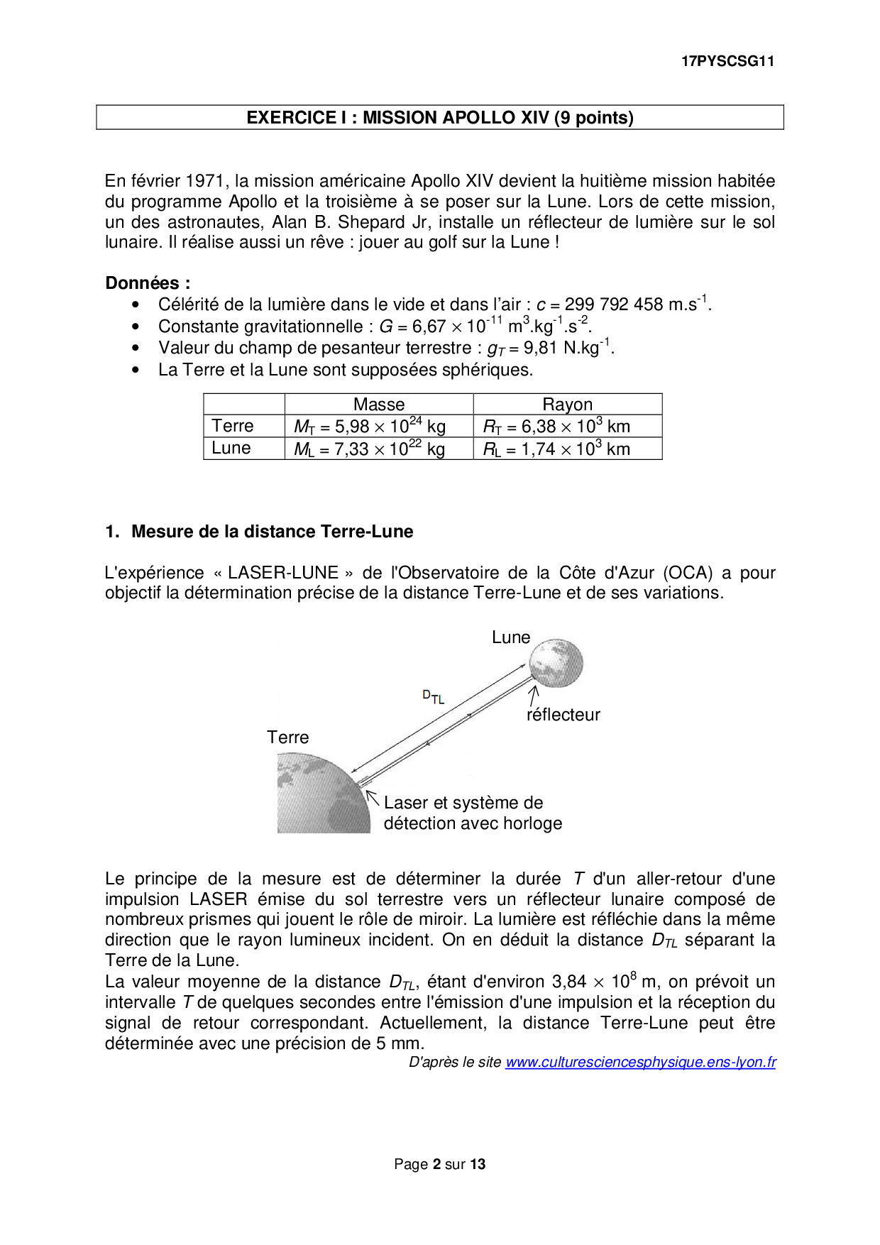 Bac S Physique Chimie (Spécialité) Centres Etrangers Afrique 2017 - Sujet