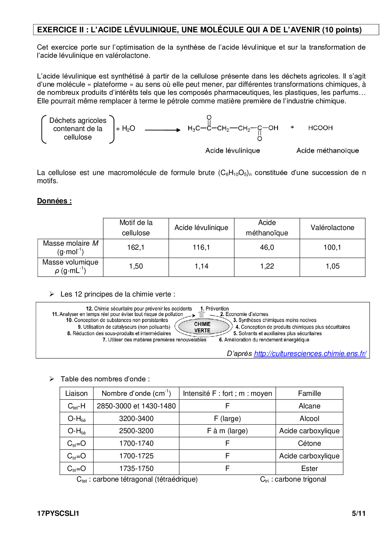 Bac S Physique Chimie (Spécialité) Liban 2017 - Sujet