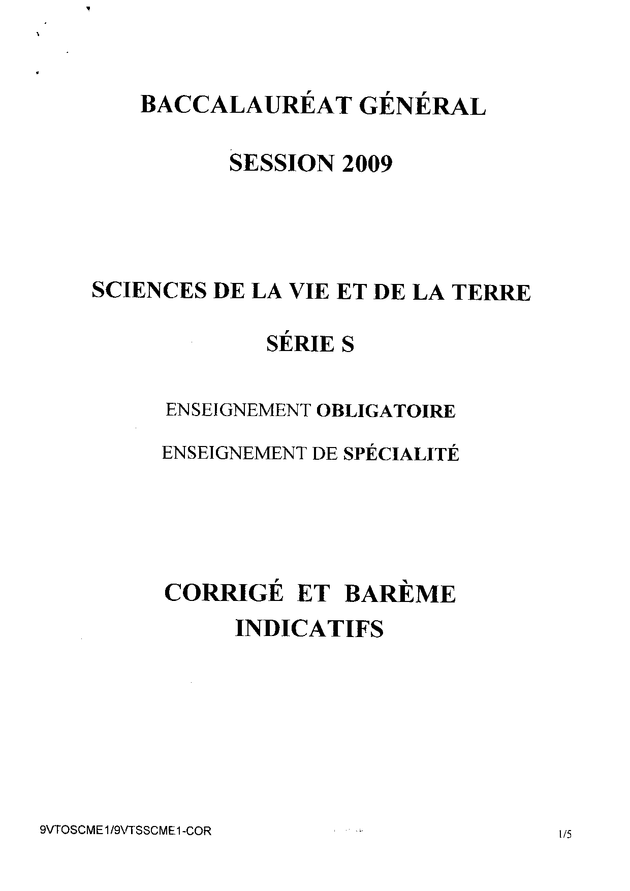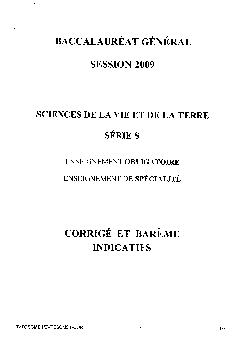 Bac S SVT Métropole 2009 - Corrigé