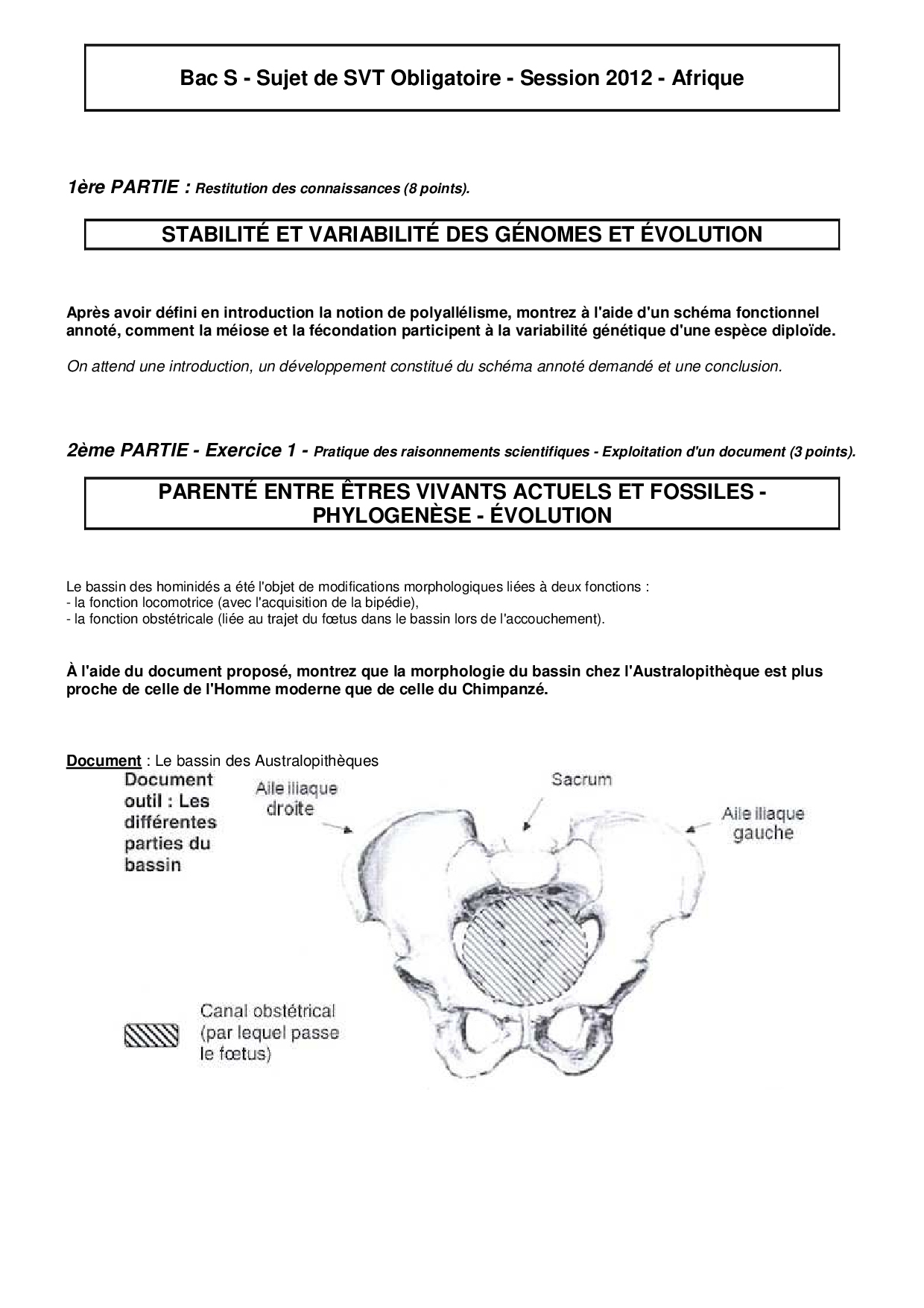 Bac S SVT Centres Etrangers Afrique 2012 - Sujet