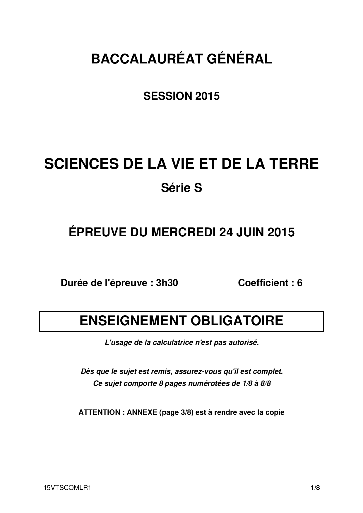 Sciences de la Vie et de la Terre (SVT): Annales Bac S