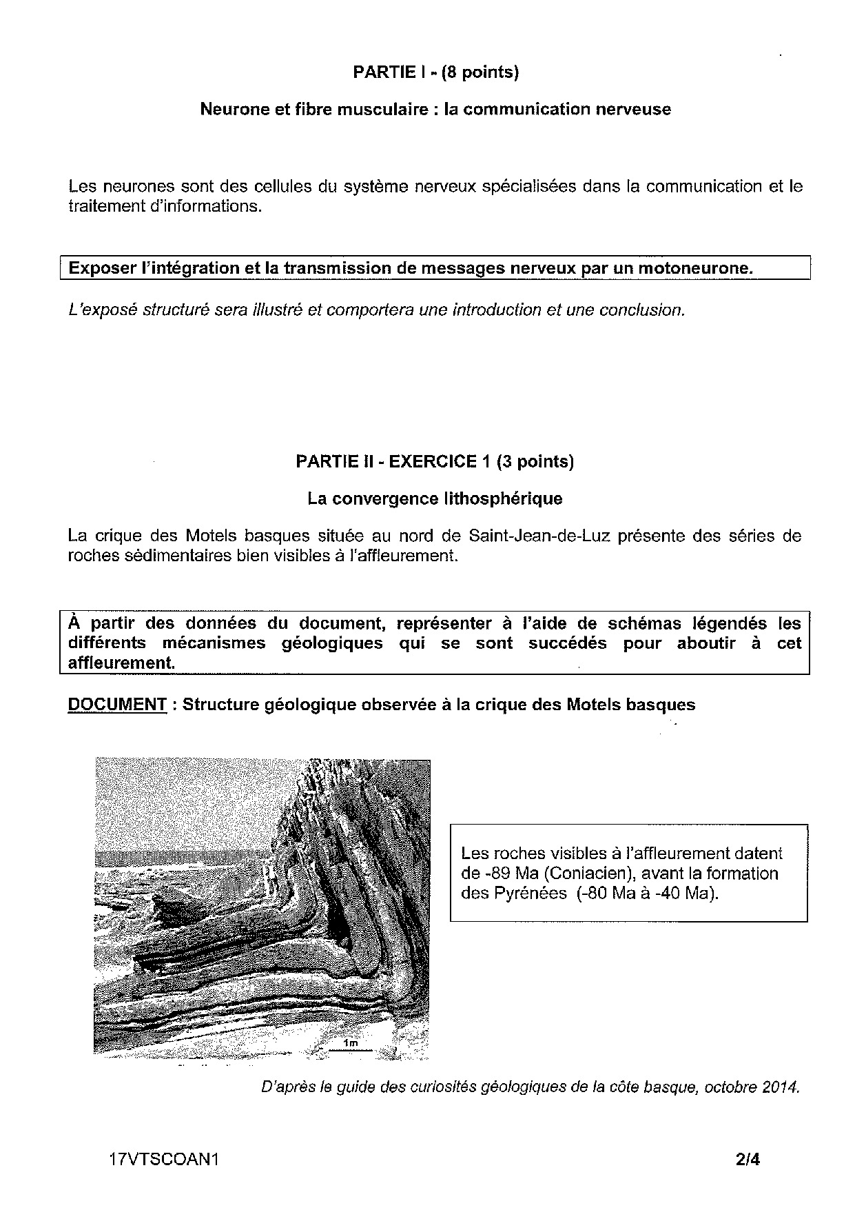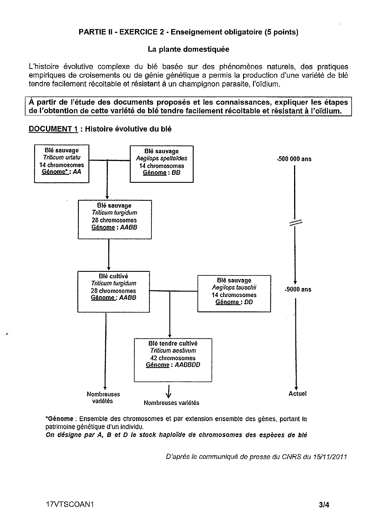 Bac S SVT Amérique du Nord 2017 - Sujet