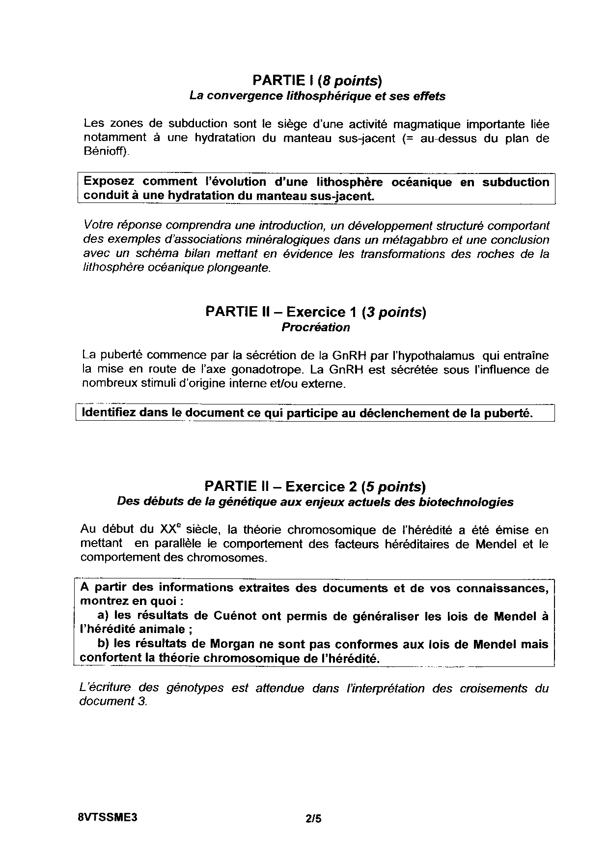 Sciences de la Vie et de la Terre (SVT): Annales Bac S