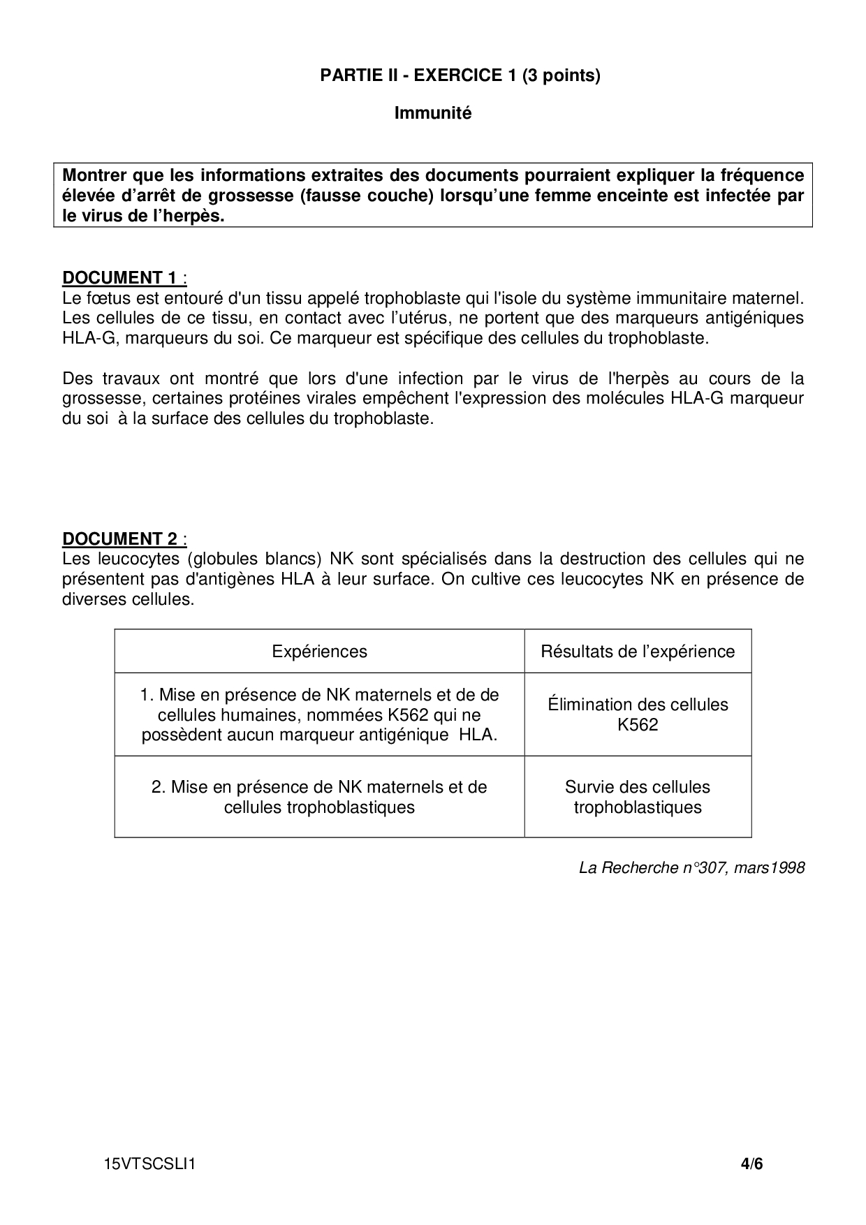 Bac S SVT (Spécialité) Liban 2015 - Sujet