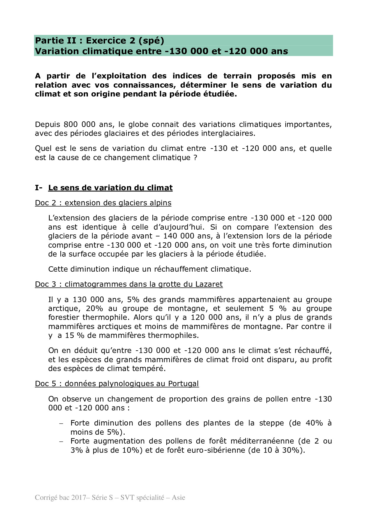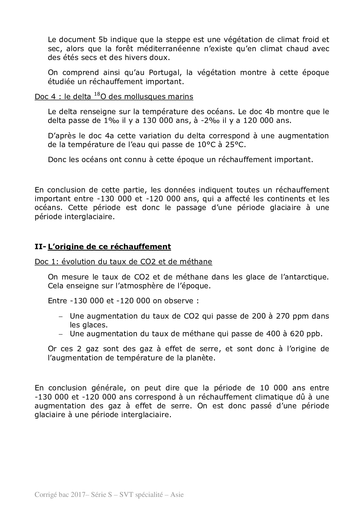 Bac S SVT (Spécialité) Asie 2017 - Corrigé