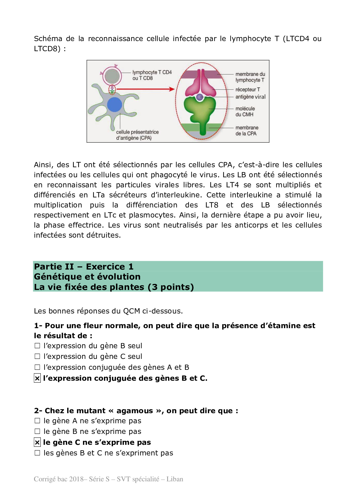 Bac S SVT (Spécialité) Liban 2018 - Corrigé