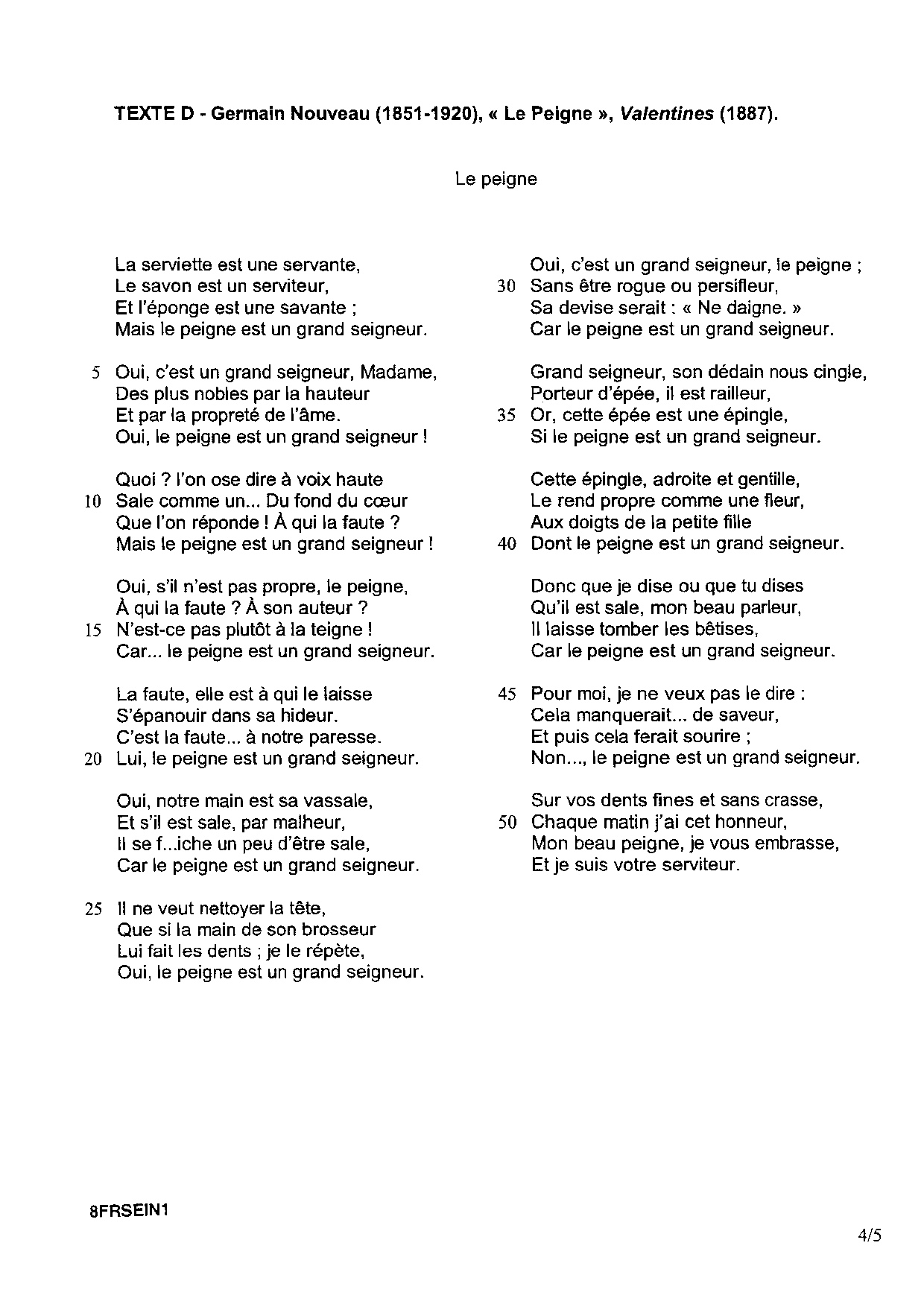 Français (1ère): Annales Bac S