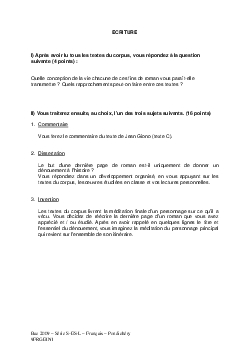 Bac S-ES Français (1ère) Pondichéry 2009 - Sujet