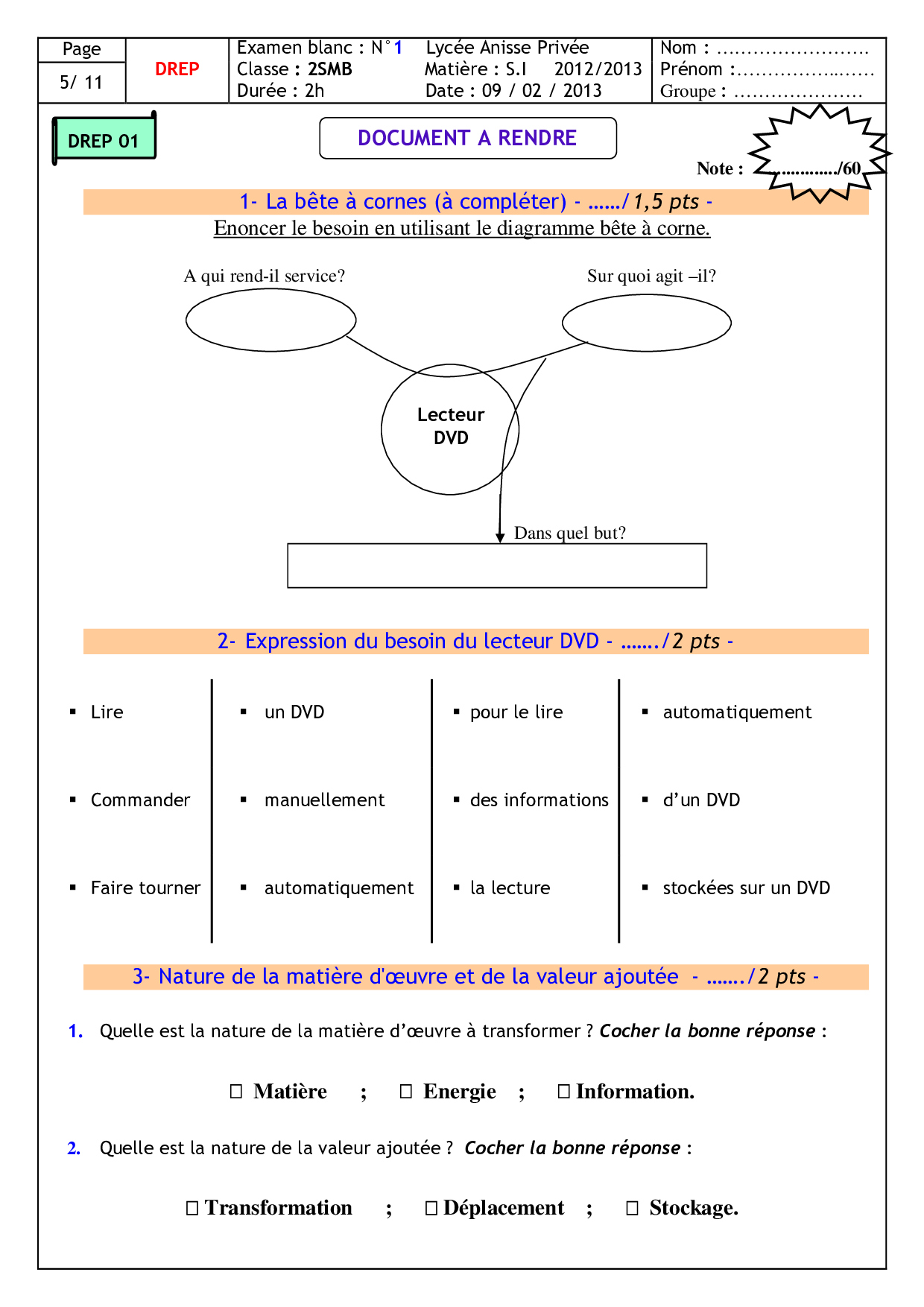 Examen Simili 3 - Sciences de l'ingénieur 2 Bac SM-B