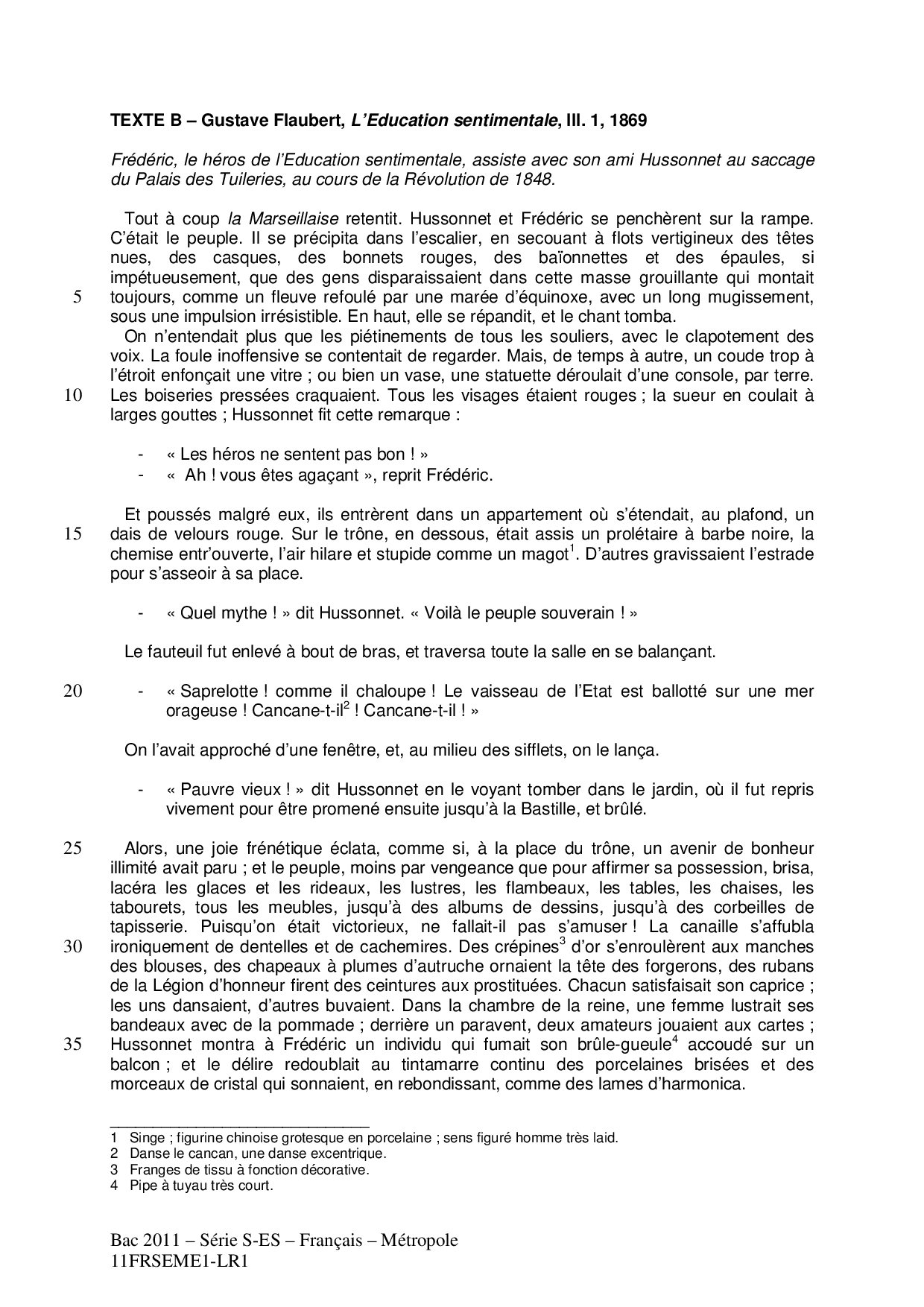 Bac S-ES Français (1ère) Métropole 2011 - Sujet