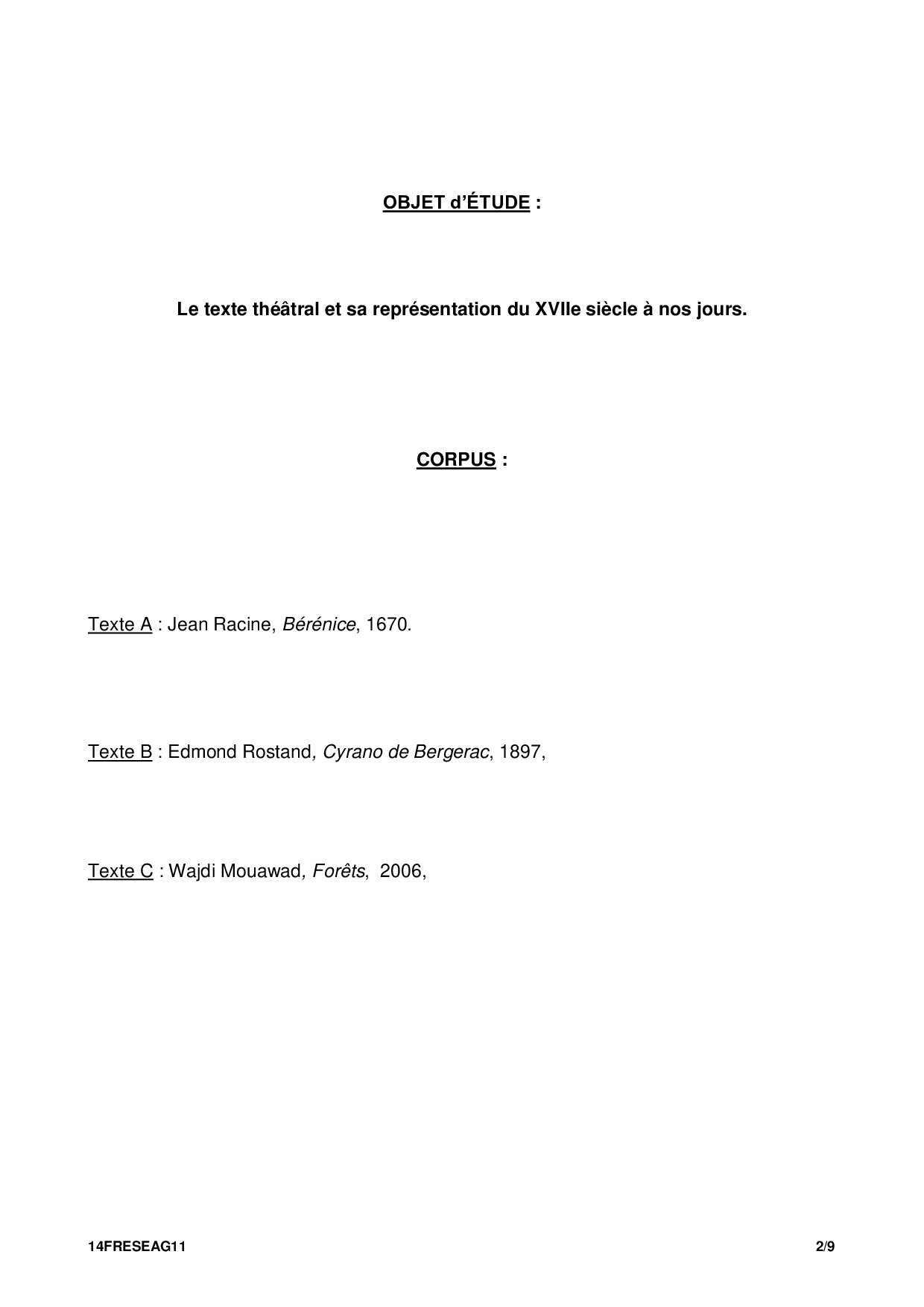 Bac S-ES Français (1ère) Centres Etrangers Afrique 2014 - Sujet