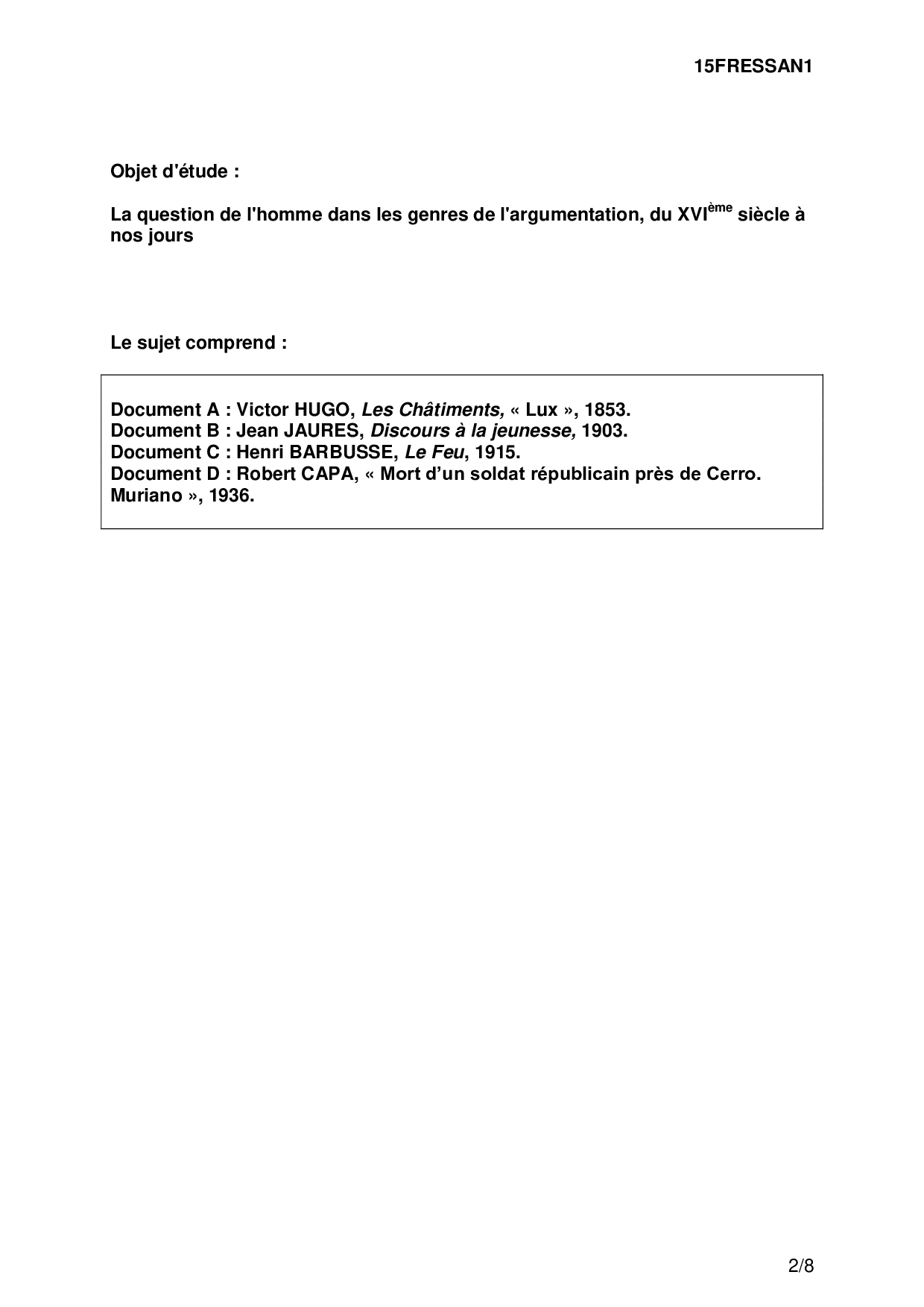 Bac S-ES Français (1ère) Amérique du Nord 2015 - Sujet