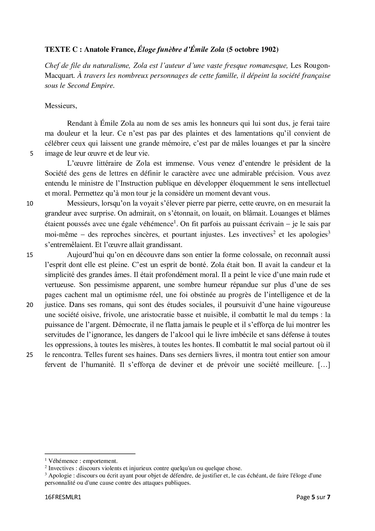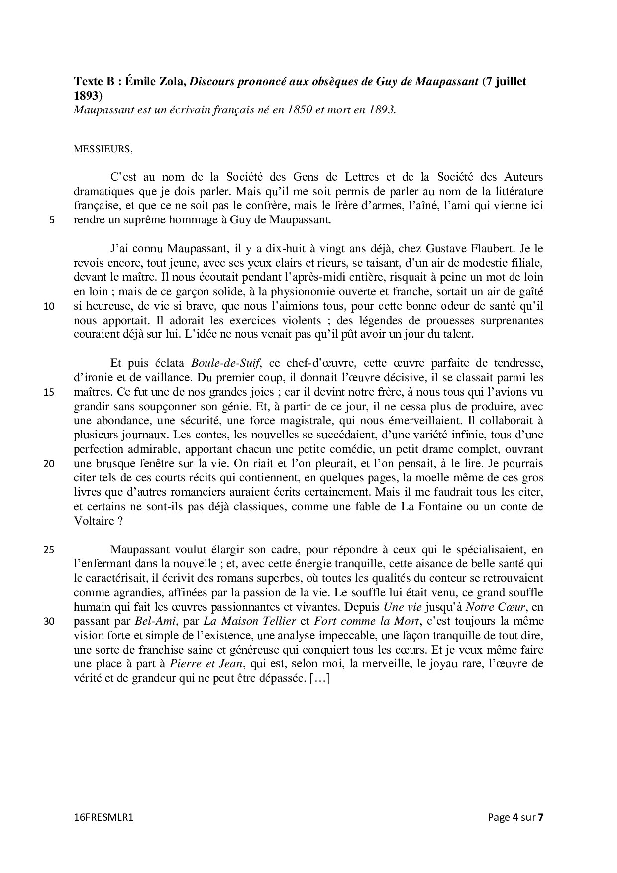 Bac S-ES Français (1ère) Métropole 2016 - Sujet