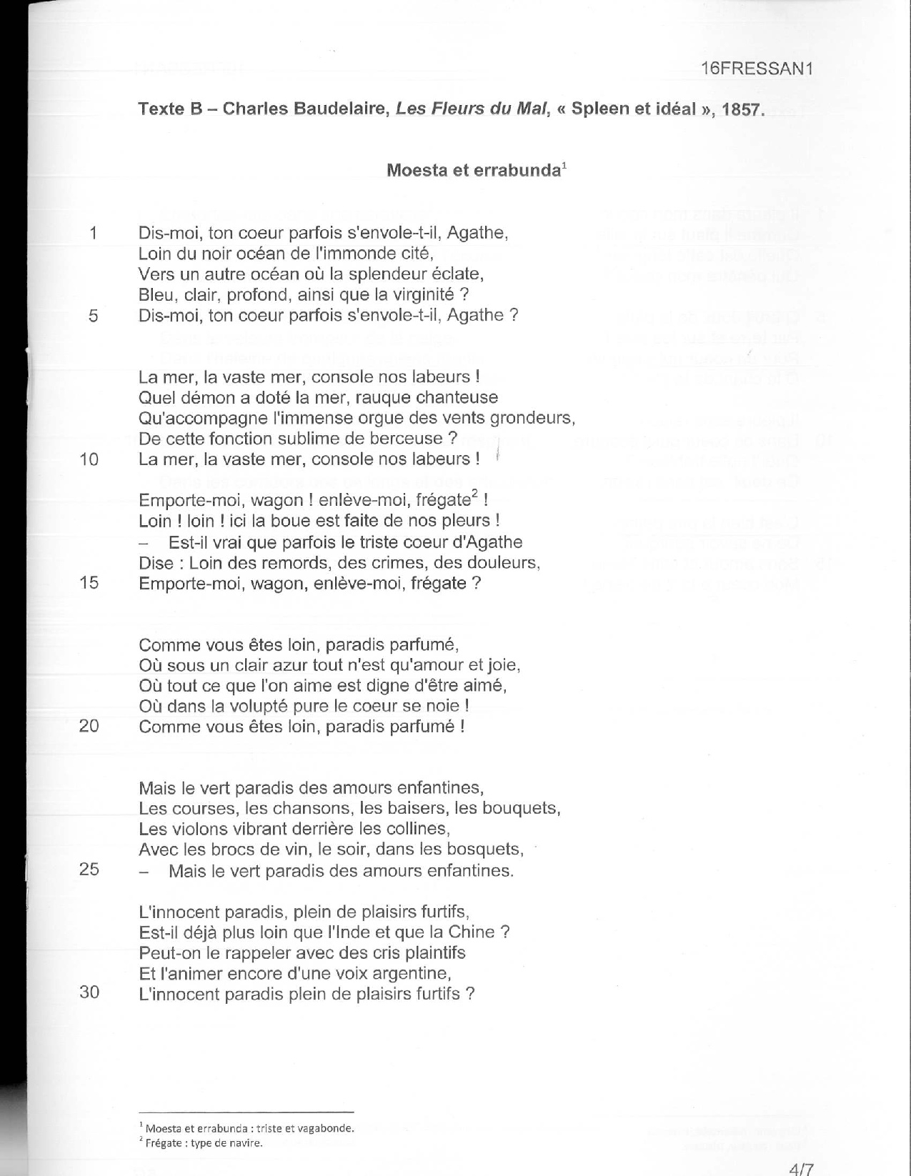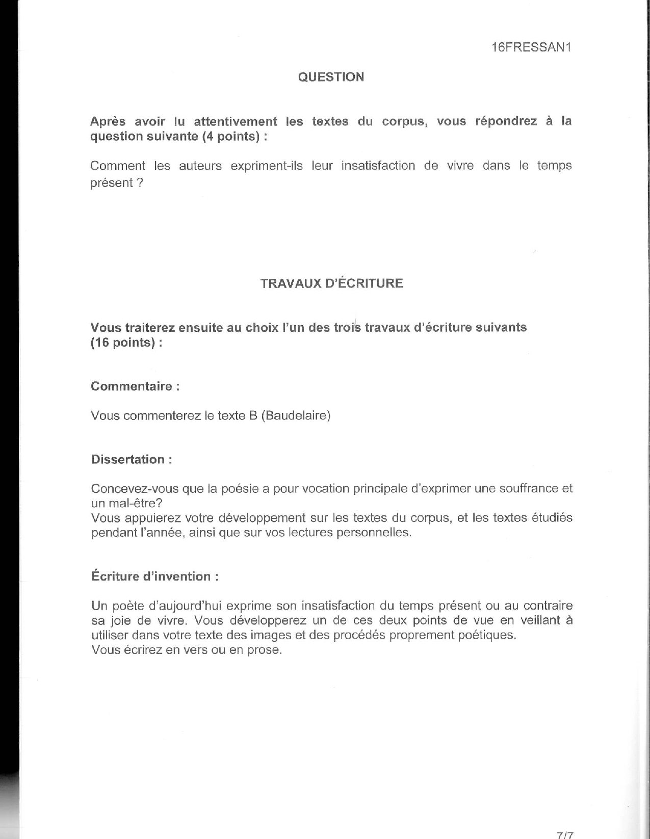 Français (1ère): Annales Bac ES
