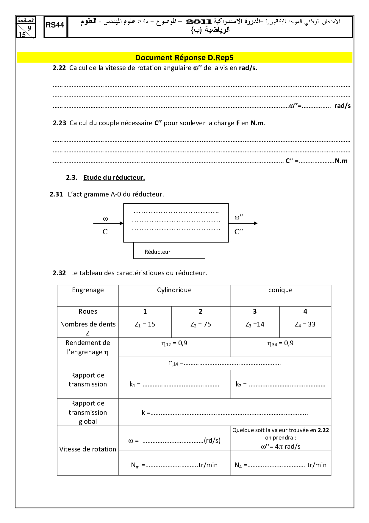 Examen SI SMB 2011 Session Rattrapage - Sujet