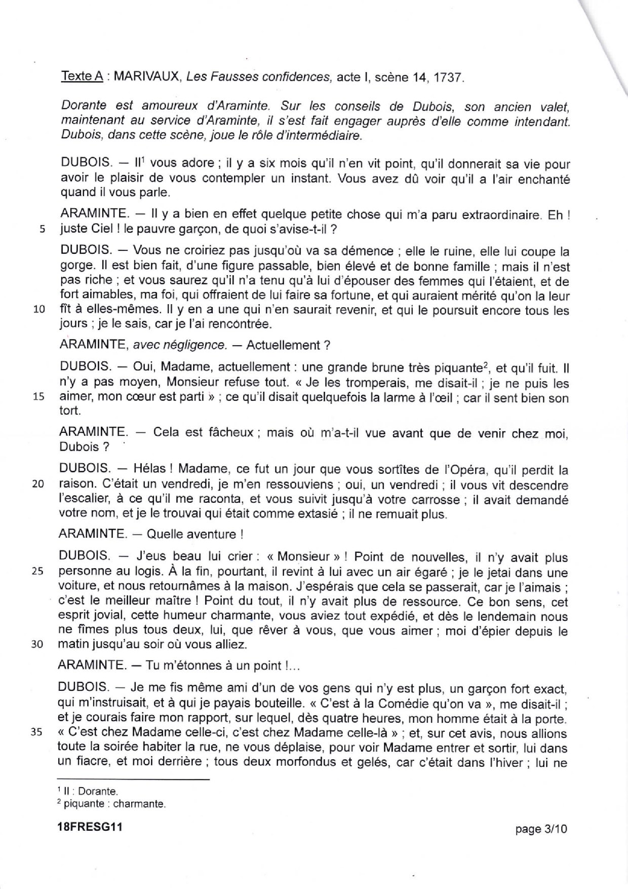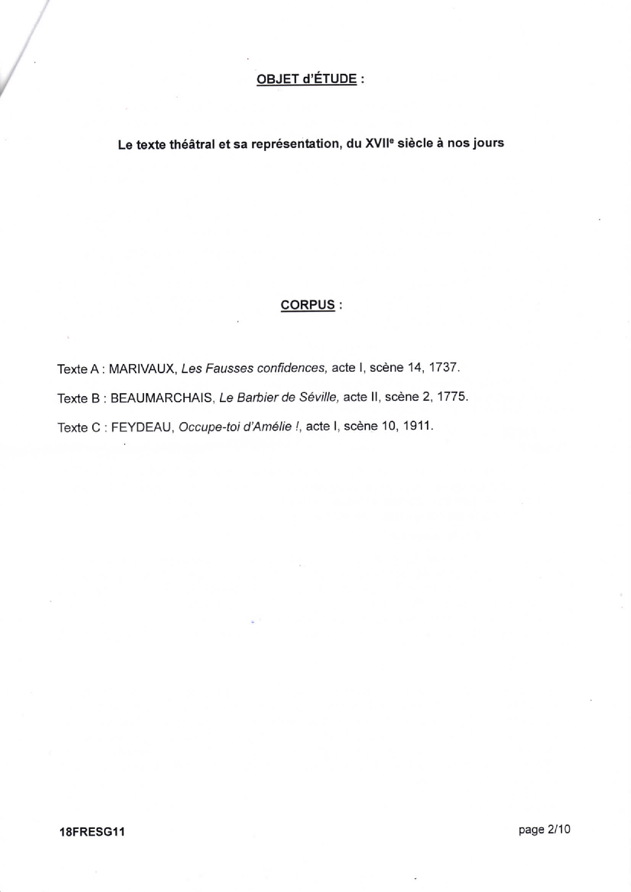 Bac S-ES Français (1ère) Centres Etrangers Afrique 2018 - Sujet