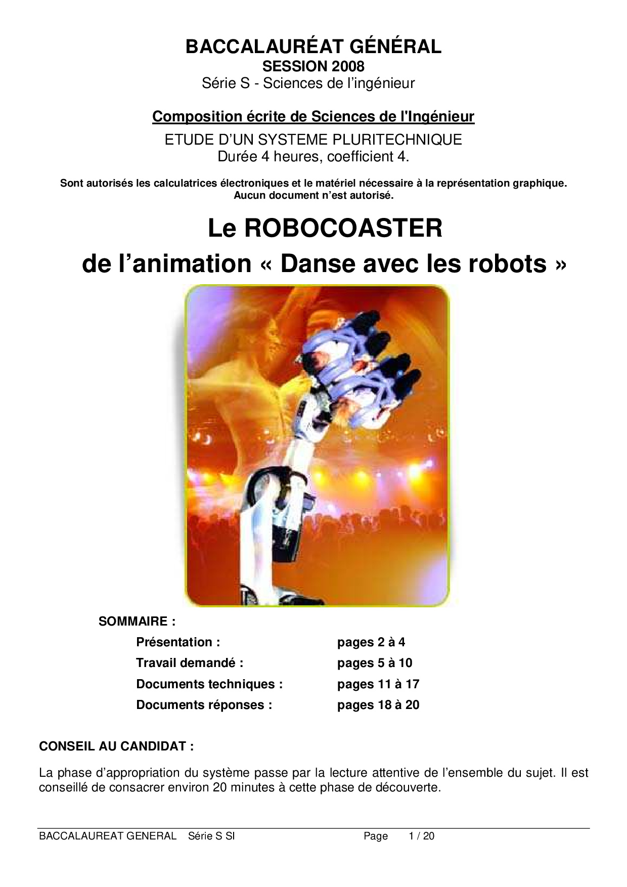 Bac S Sciences de l'Ingénieur (SI) Nouvelle-Calédonie 2008 - Sujet
