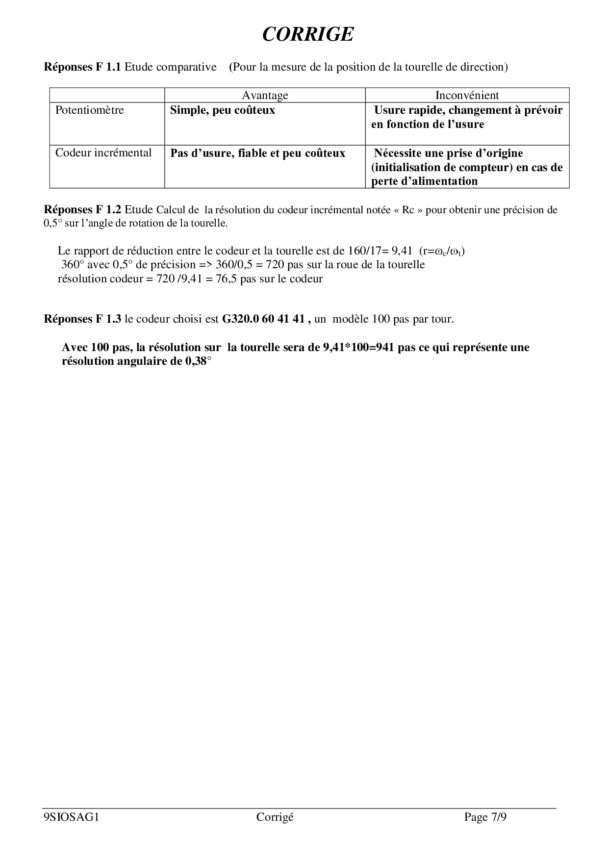 Bac S Sciences de l'Ingénieur (SI) Polynésie 2009 - Corrigé