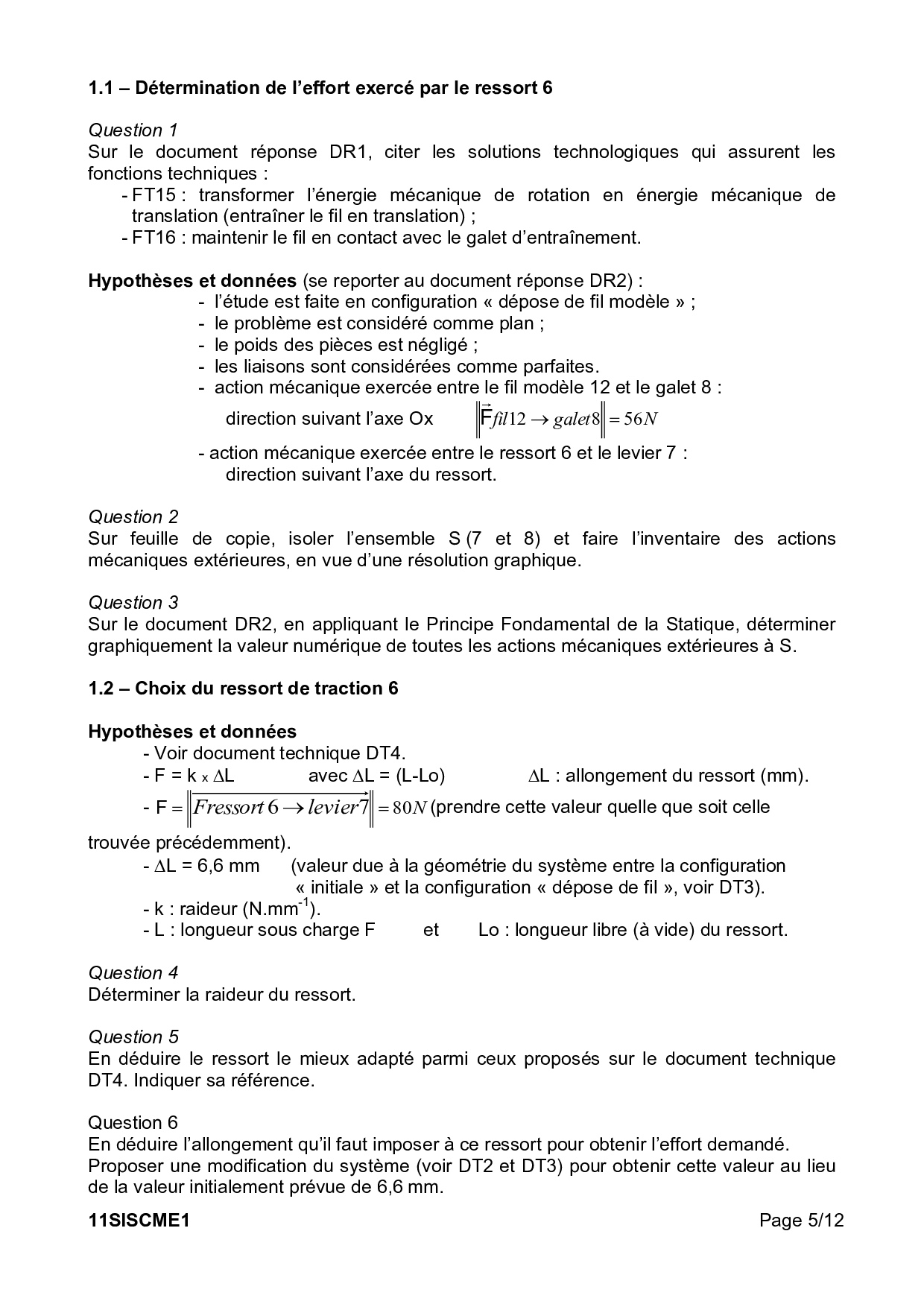 Bac S Sciences de l'Ingénieur (SI) Métropole 2011 - Sujet