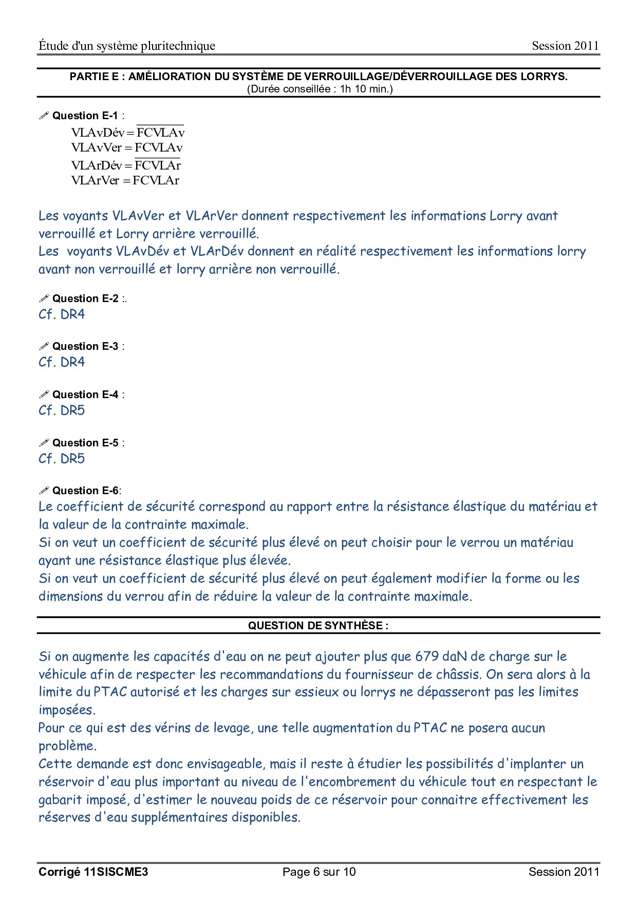 Bac S Sciences de l'Ingénieur (SI) Métropole 2011 (Session de remplacement) - Corrigé