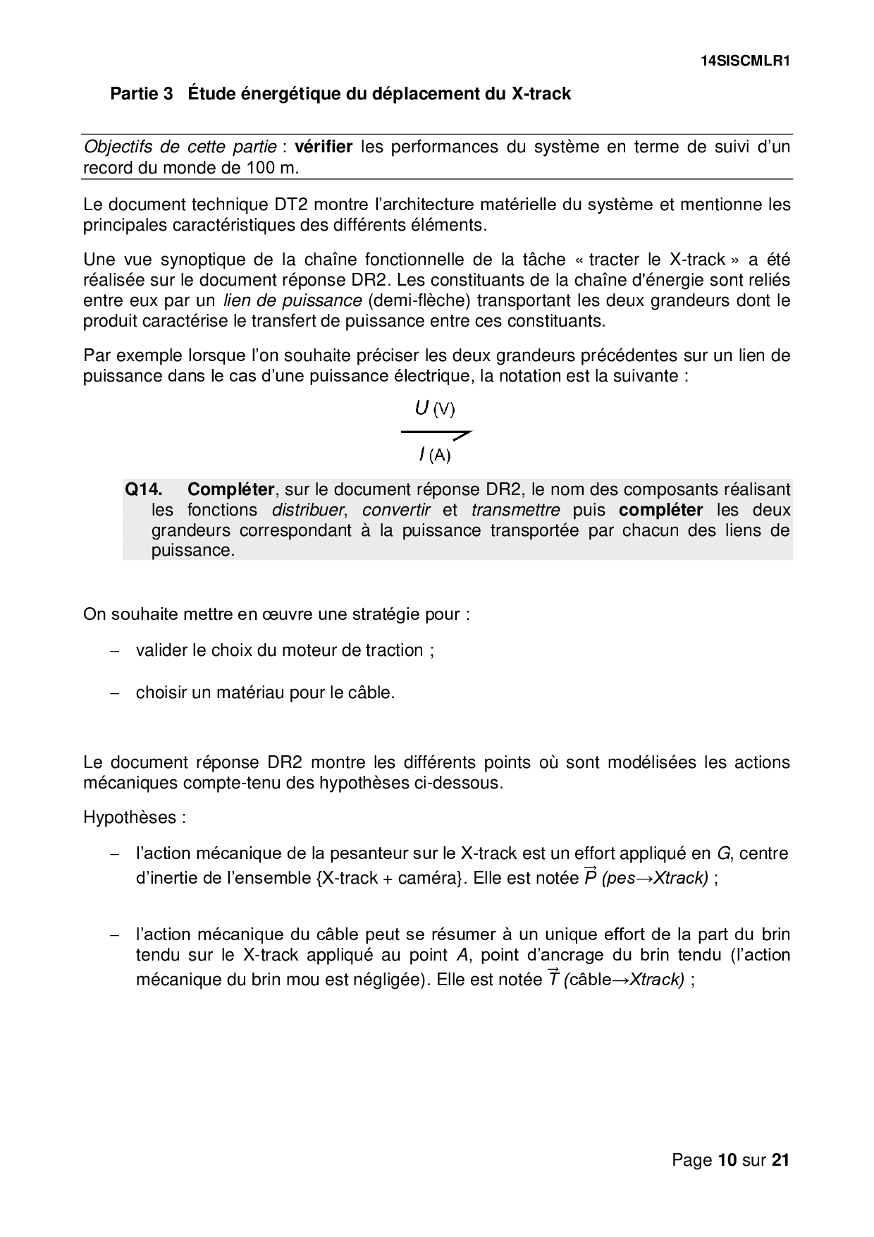 Bac S Sciences de l'Ingénieur (SI) Métropole 2014 - Sujet