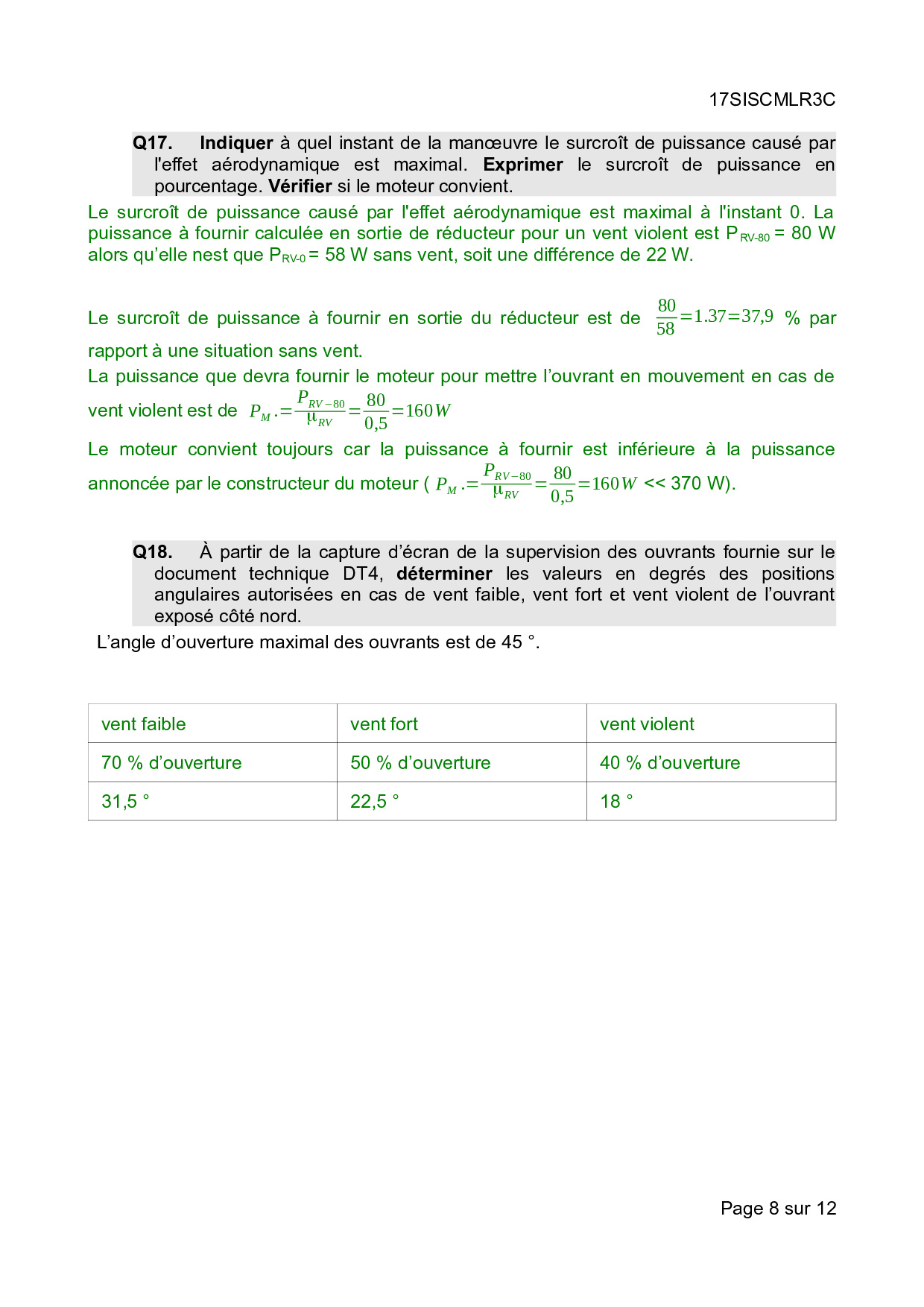 Bac S Sciences de l'Ingénieur (SI) Métropole 2017 (Session de remplacement) - Corrigé