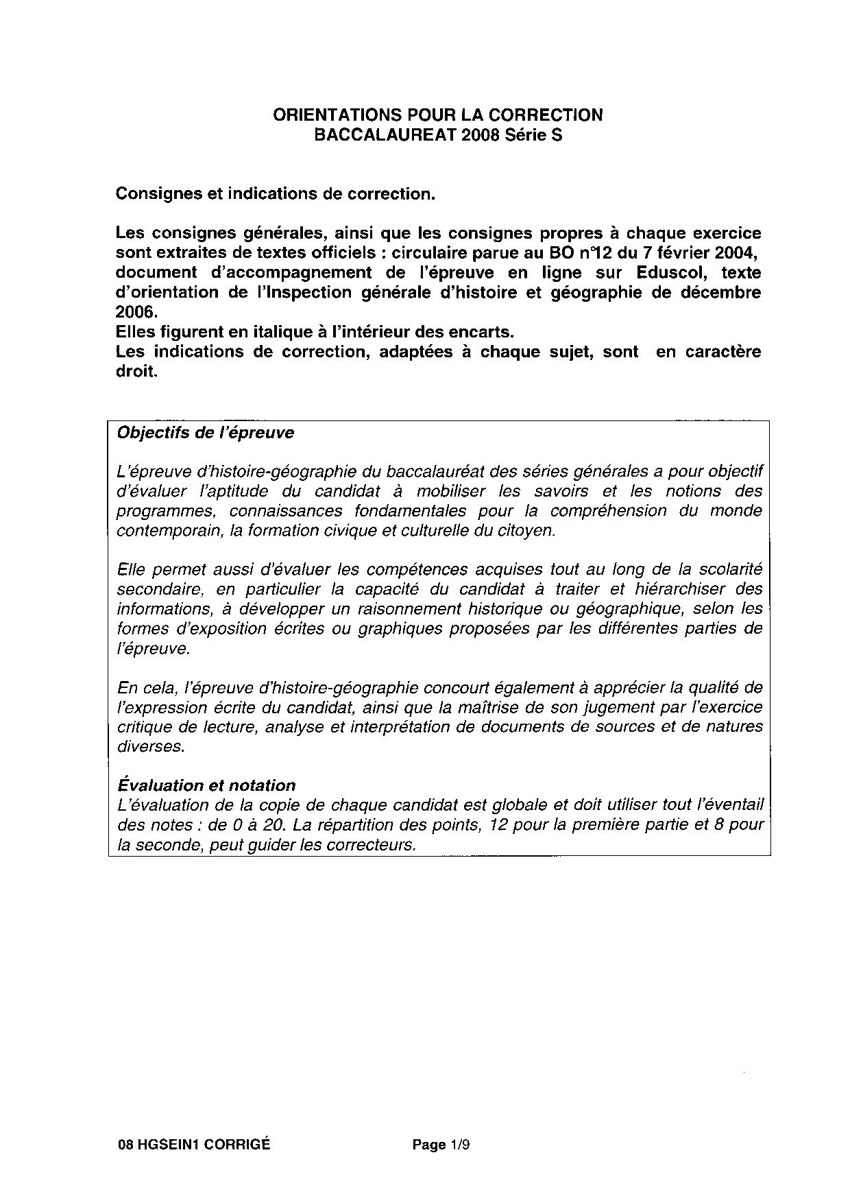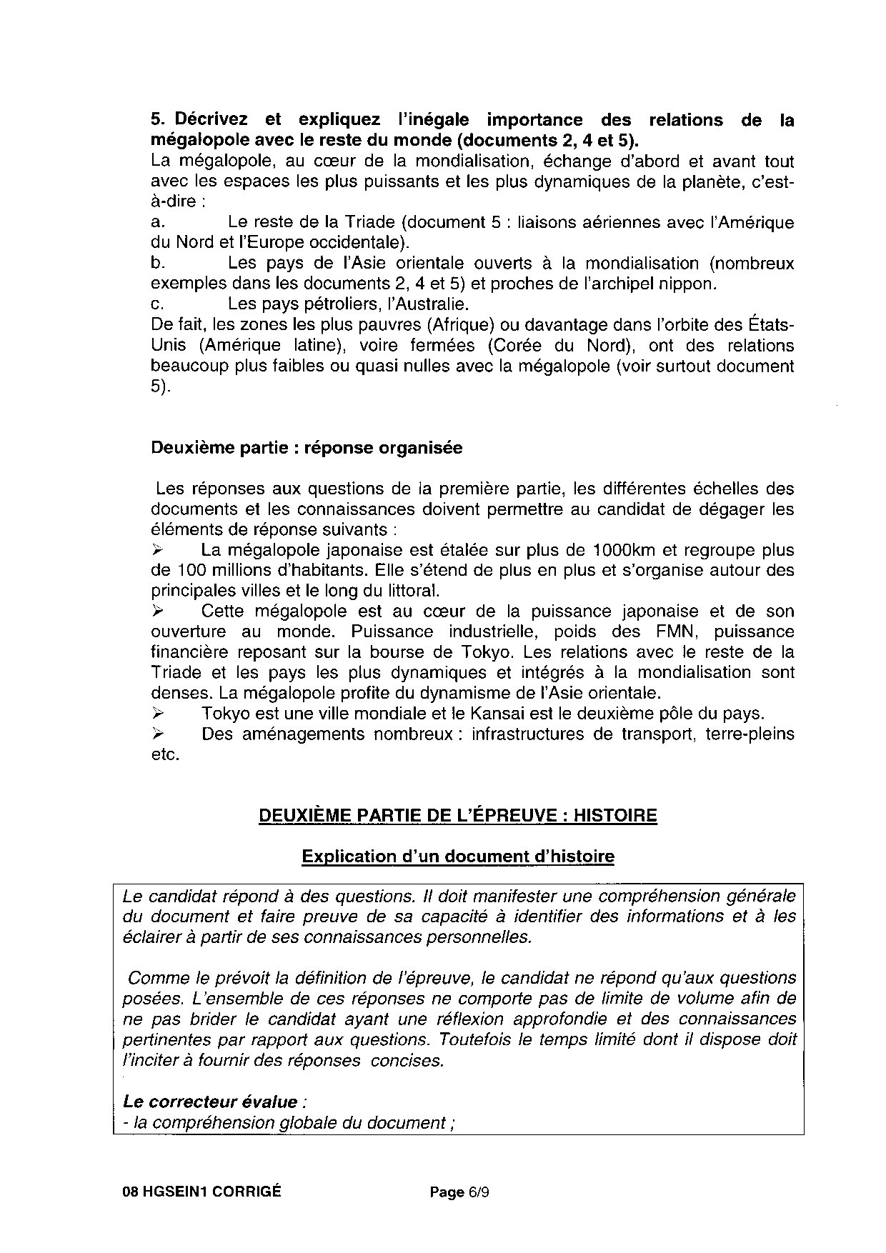 Bac S Histoire Géographie Pondichéry 2008 - Corrigé