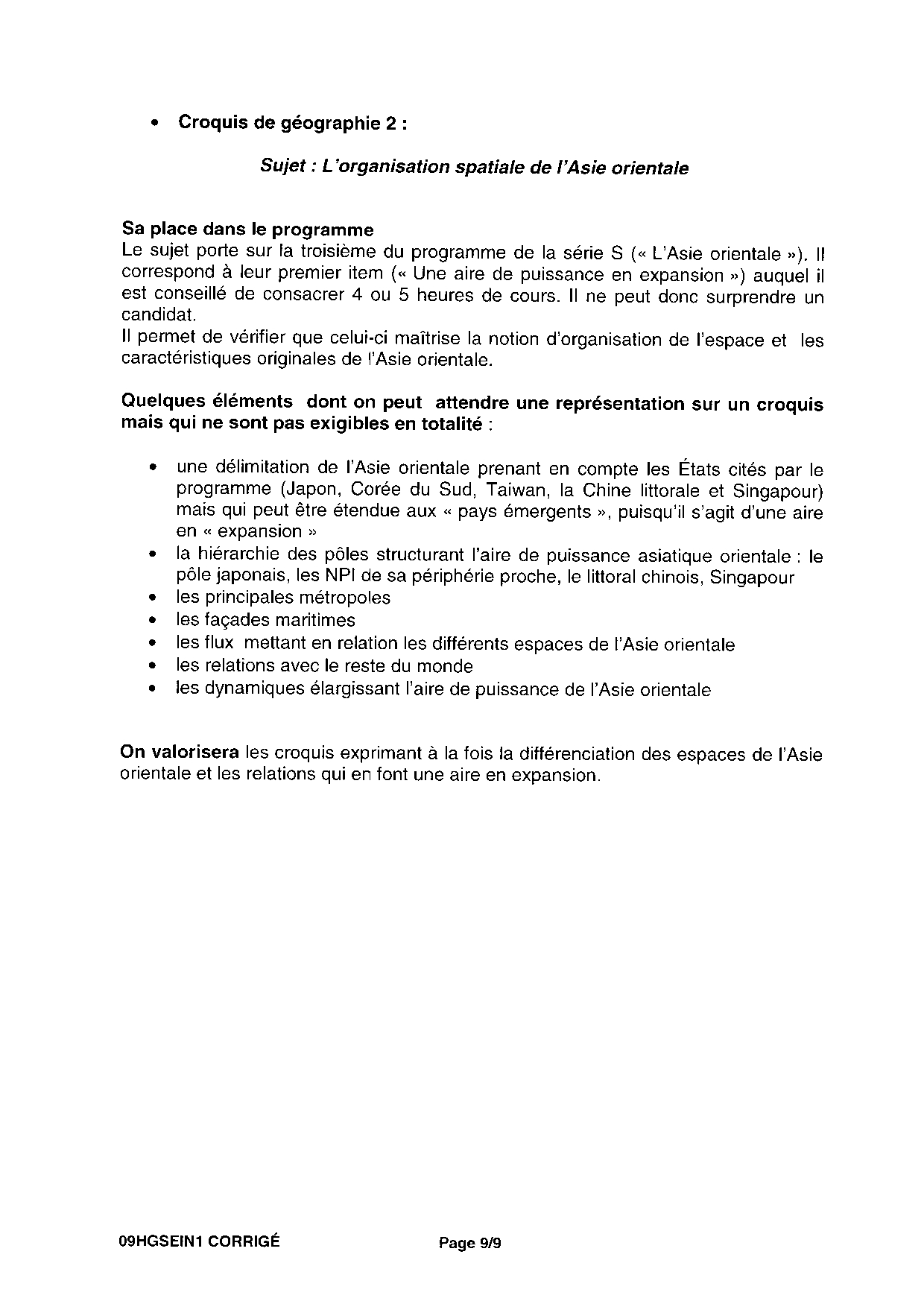 Bac S Histoire Géographie Pondichéry 2009 - Corrigé