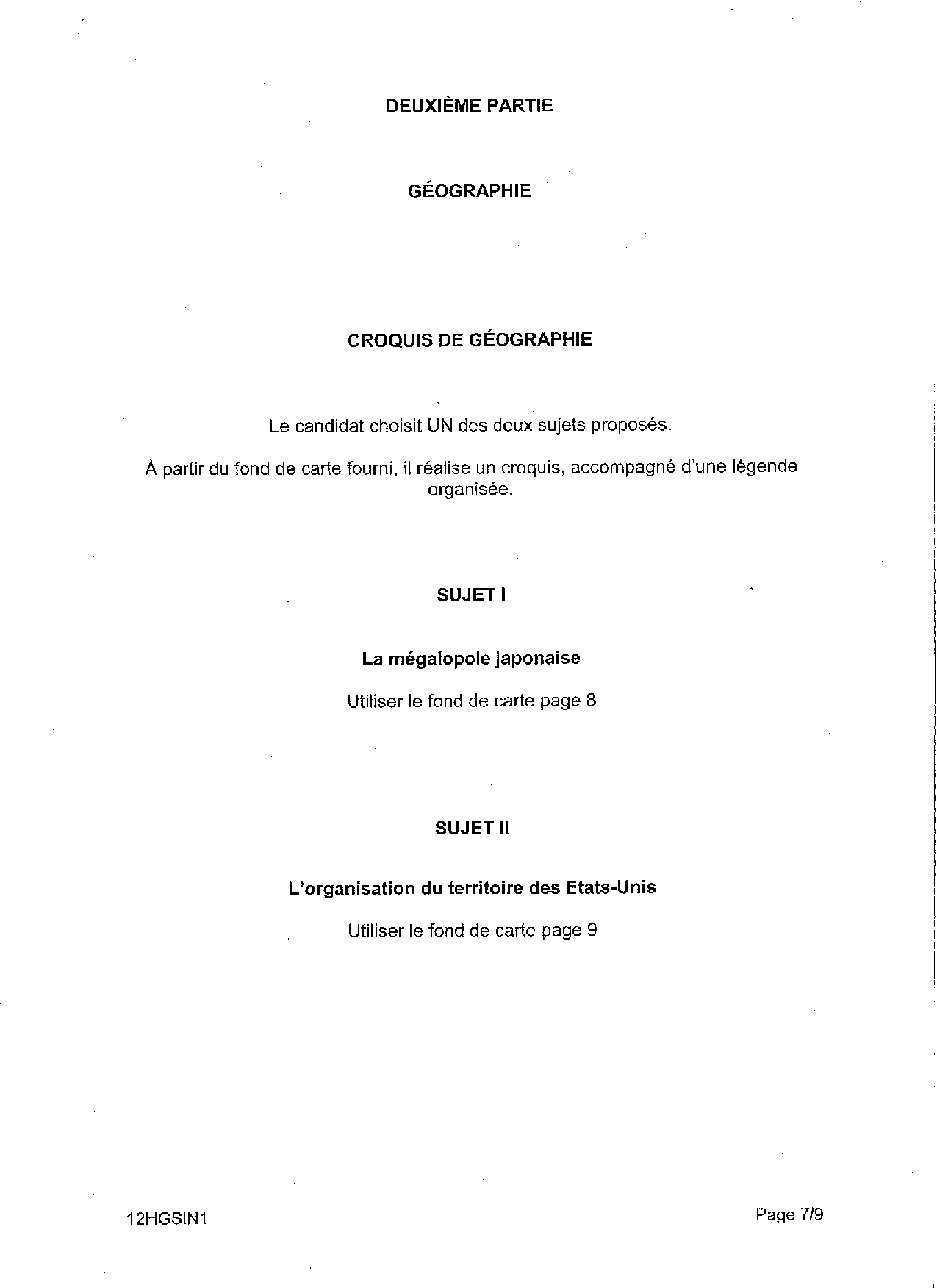Bac S Histoire Géographie Pondichéry 2012 - Sujet