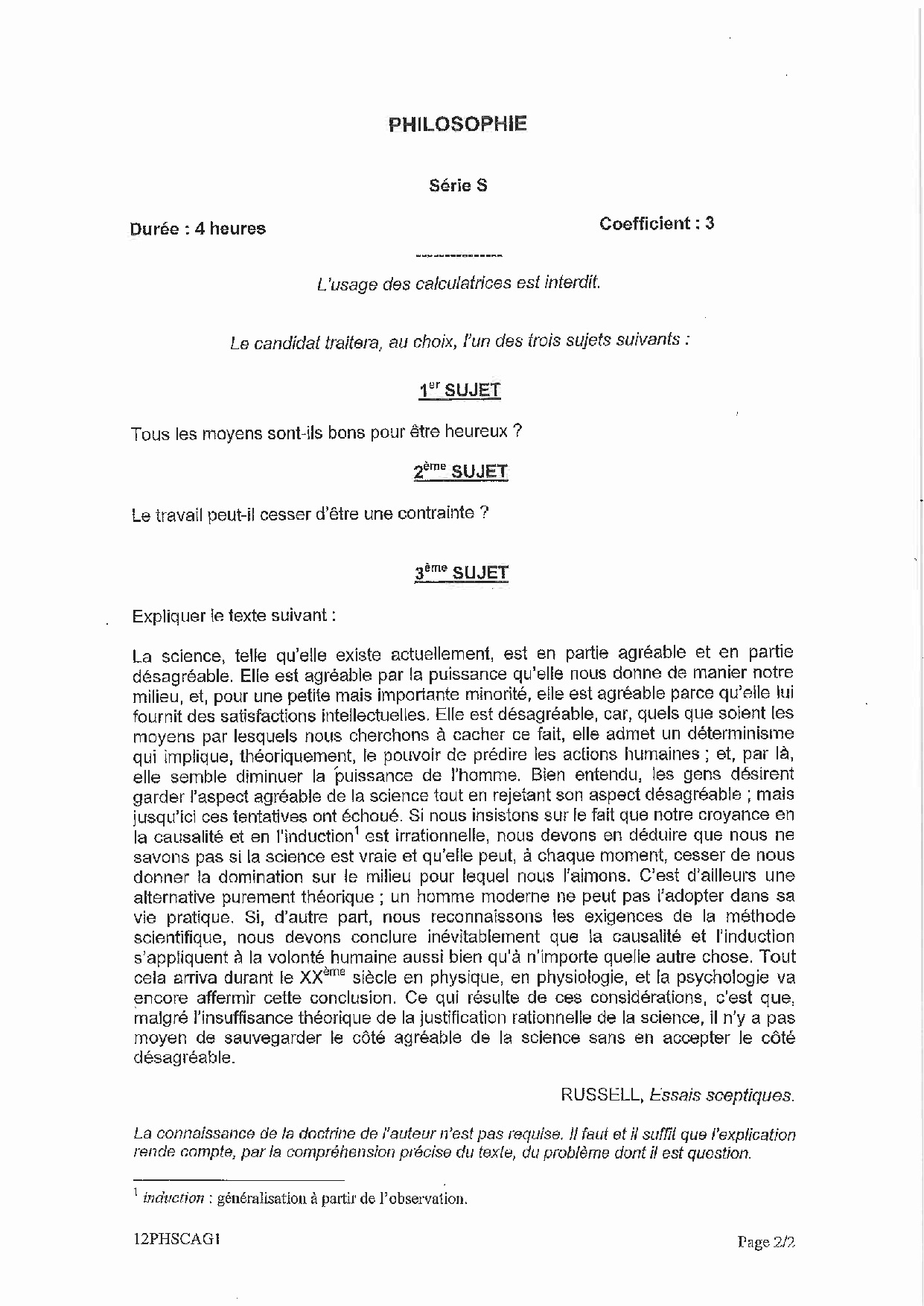 Bac S Philosophie Antilles-Guyane 2012 - Sujet