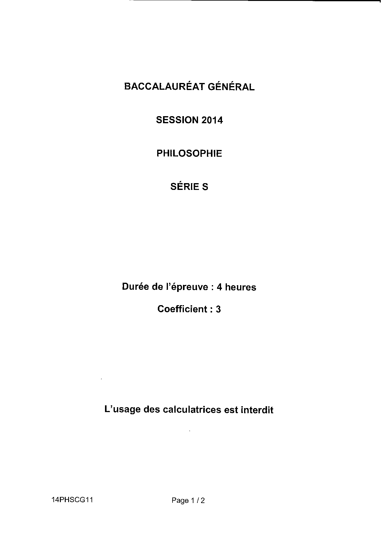 Bac S Philosophie Centres Etrangers Afrique 2014 - Sujet