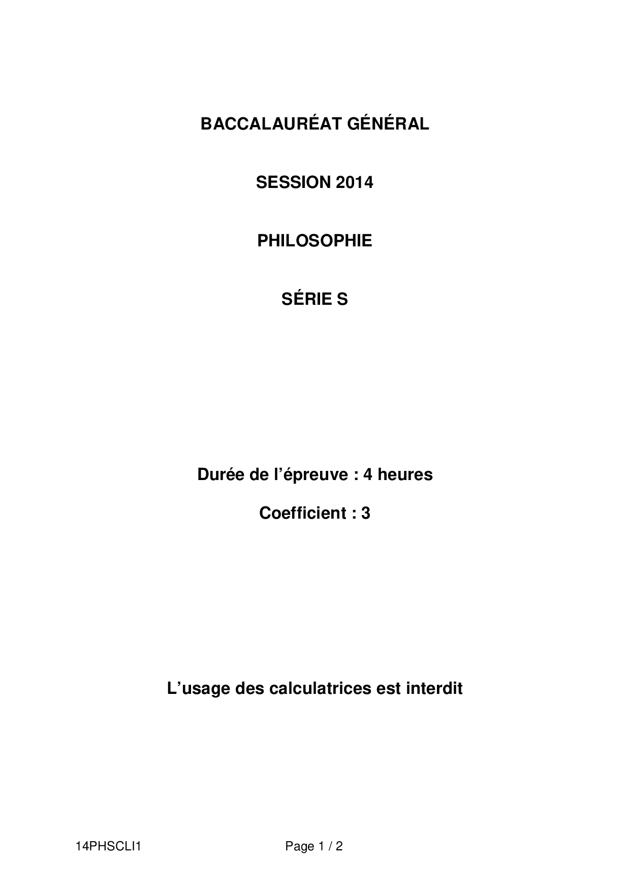 Bac S Philosophie Liban 2014 - Sujet