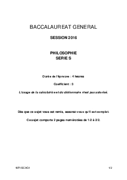 Bac S Philosophie Antilles-Guyane 2016 - Sujet