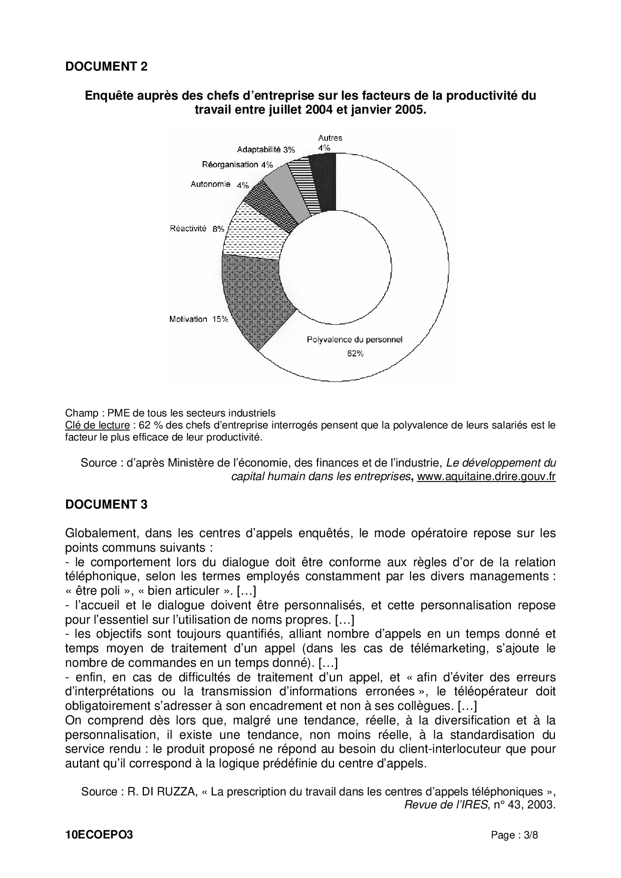 Bac ES Sciences Economiques et Sociales (SES) Polynésie 2010 (Session de remplacement) - Sujet