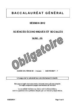 Bac ES Sciences Economiques et Sociales (SES) Polynésie 2012 - Sujet