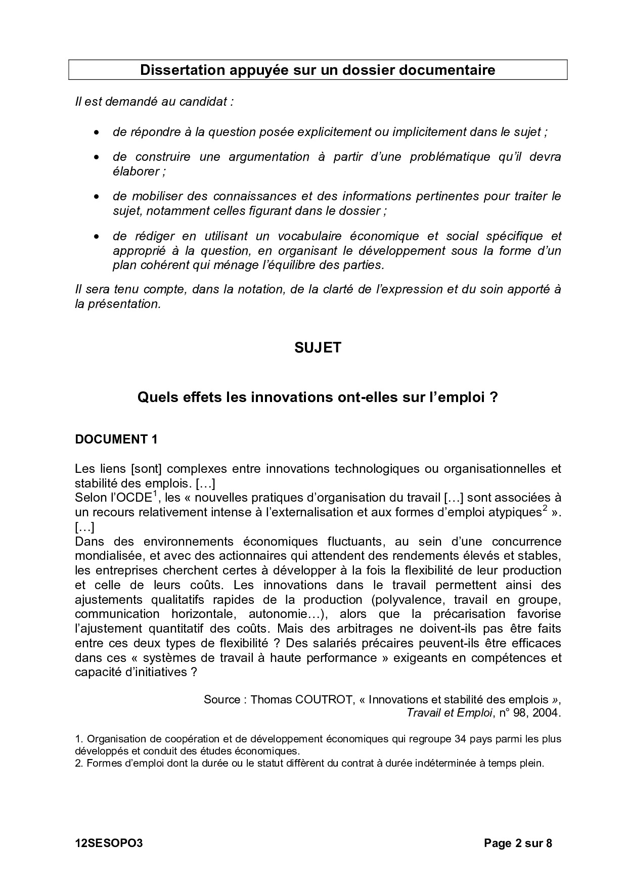 Bac ES Sciences Economiques et Sociales (SES) Polynésie 2012 (Session de remplacement) - Sujet
