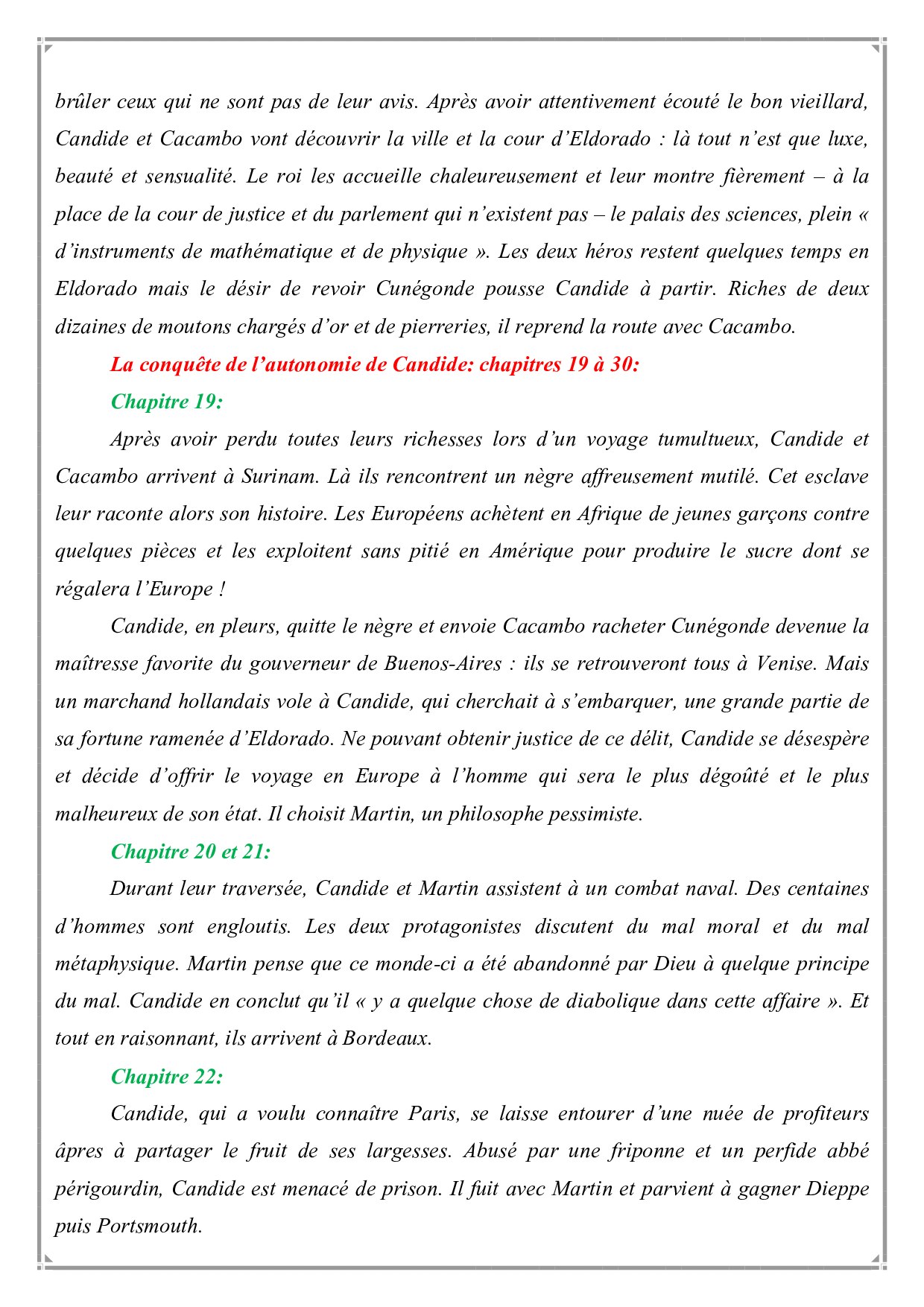 Candide ou l'optimisme - Résumé chapitre par chapitre