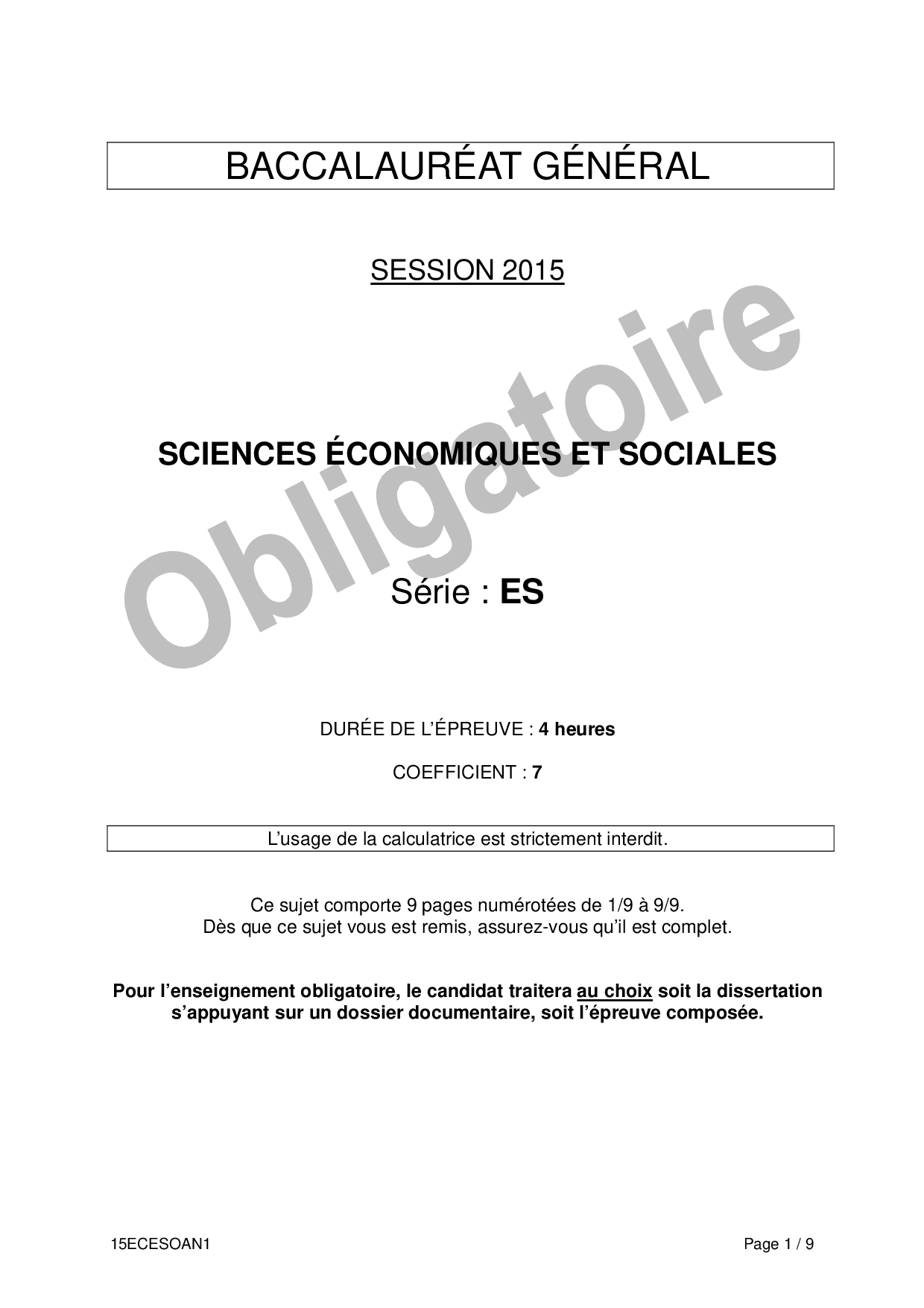Sciences Economiques et Sociales (SES): Annales Bac ES