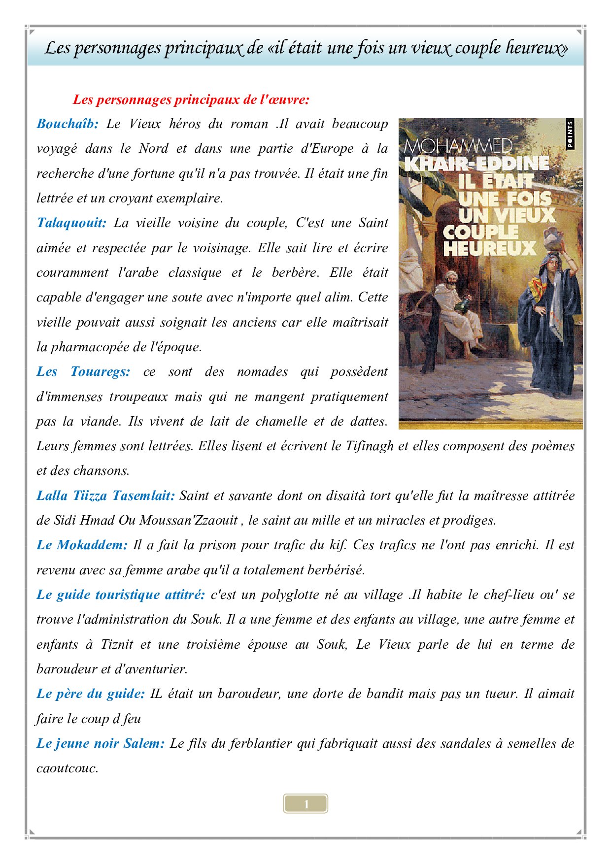 Module 2 : Il était une fois un vieux couple heureux (Roman maghrébin contemporain)