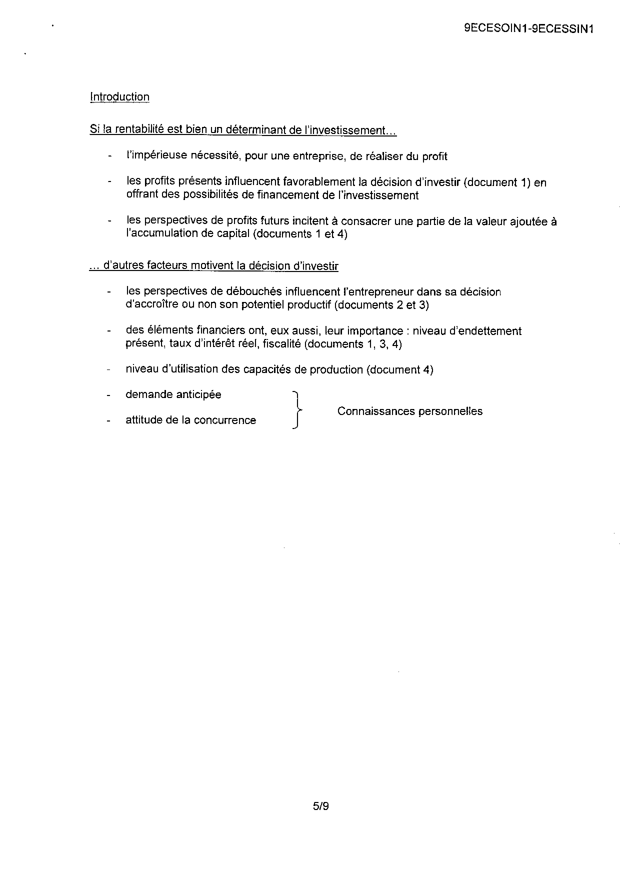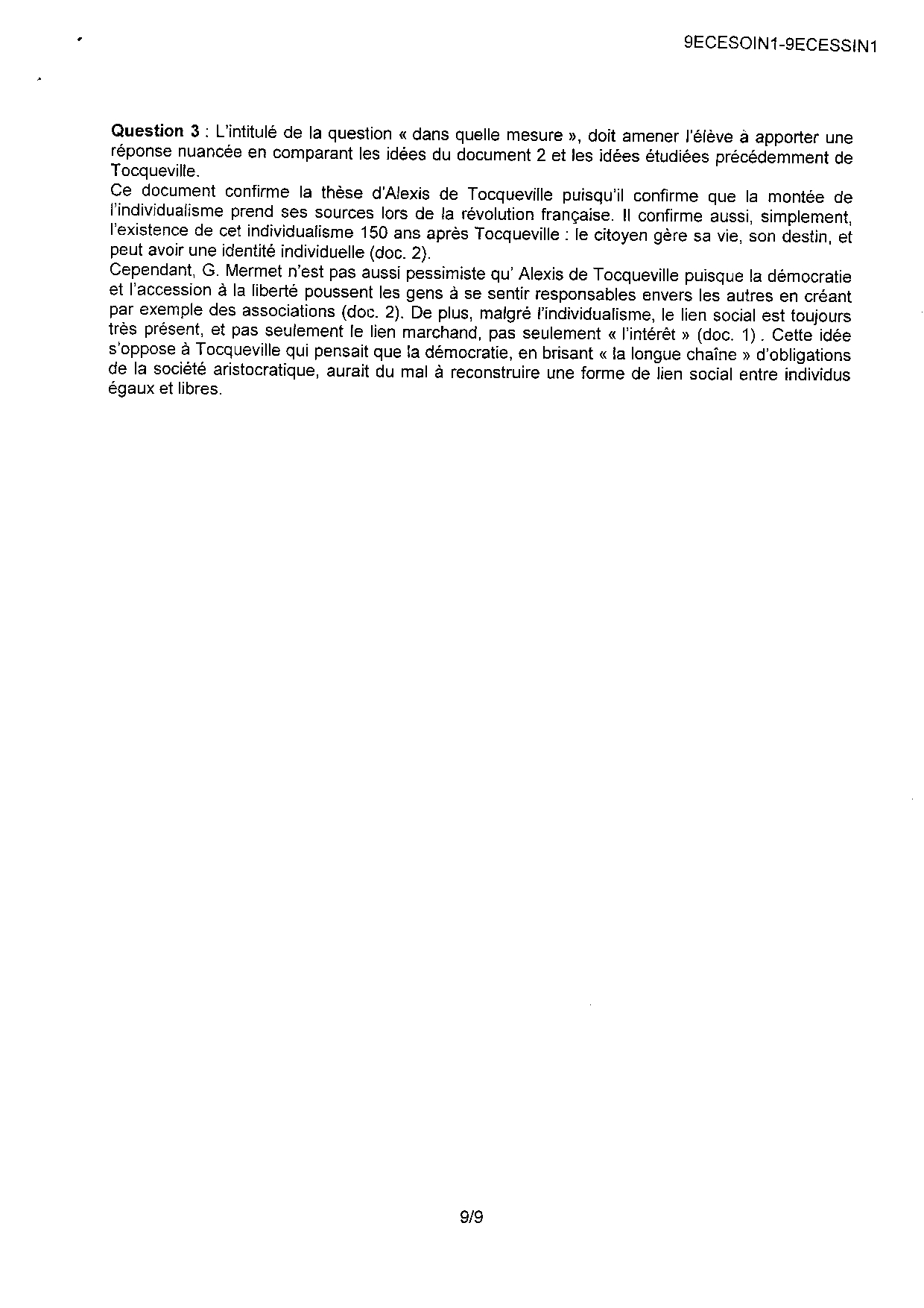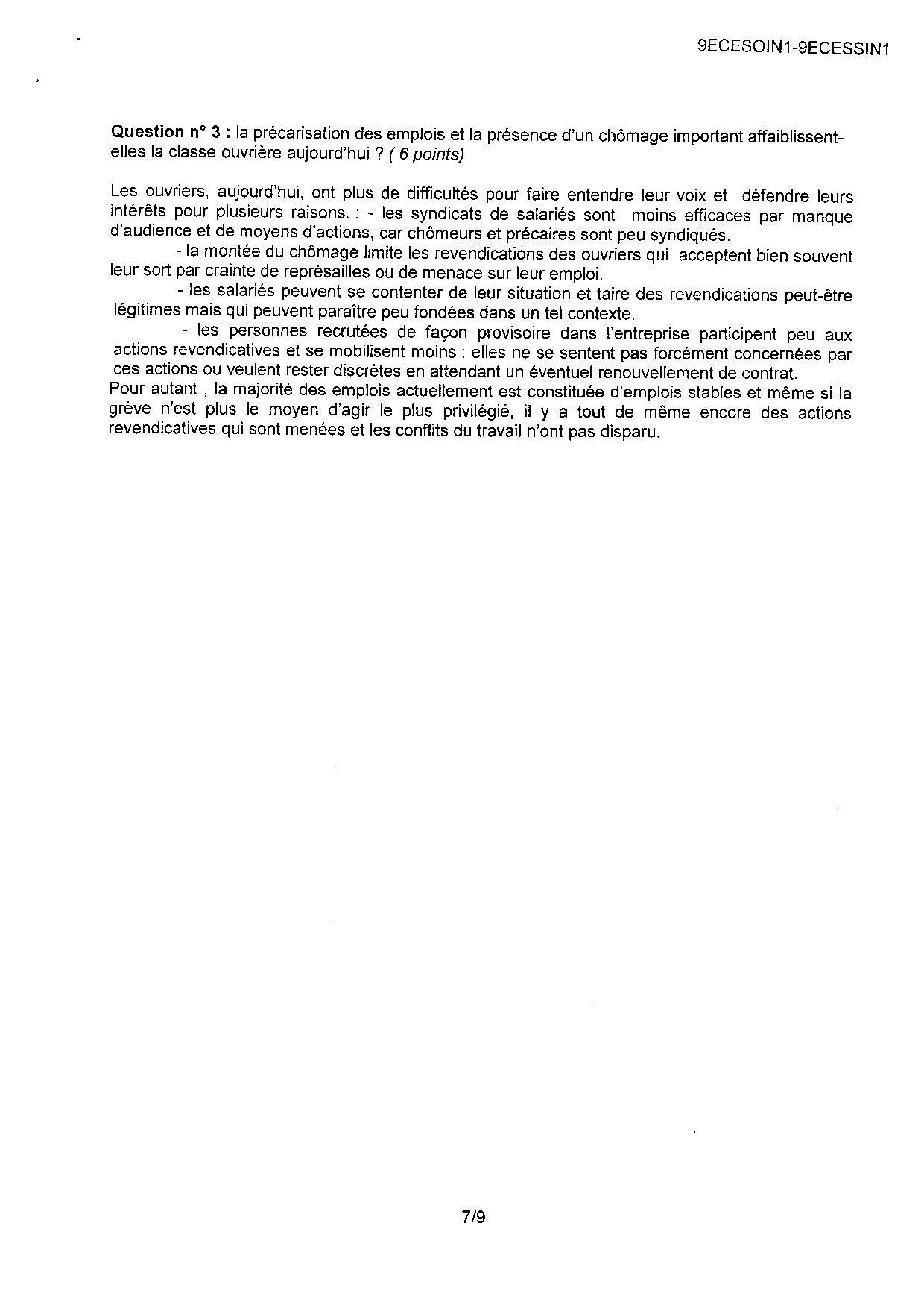 Bac ES Sciences Economiques et Sociales (SES Spécialité) Pondichéry 2009 - Corrigé