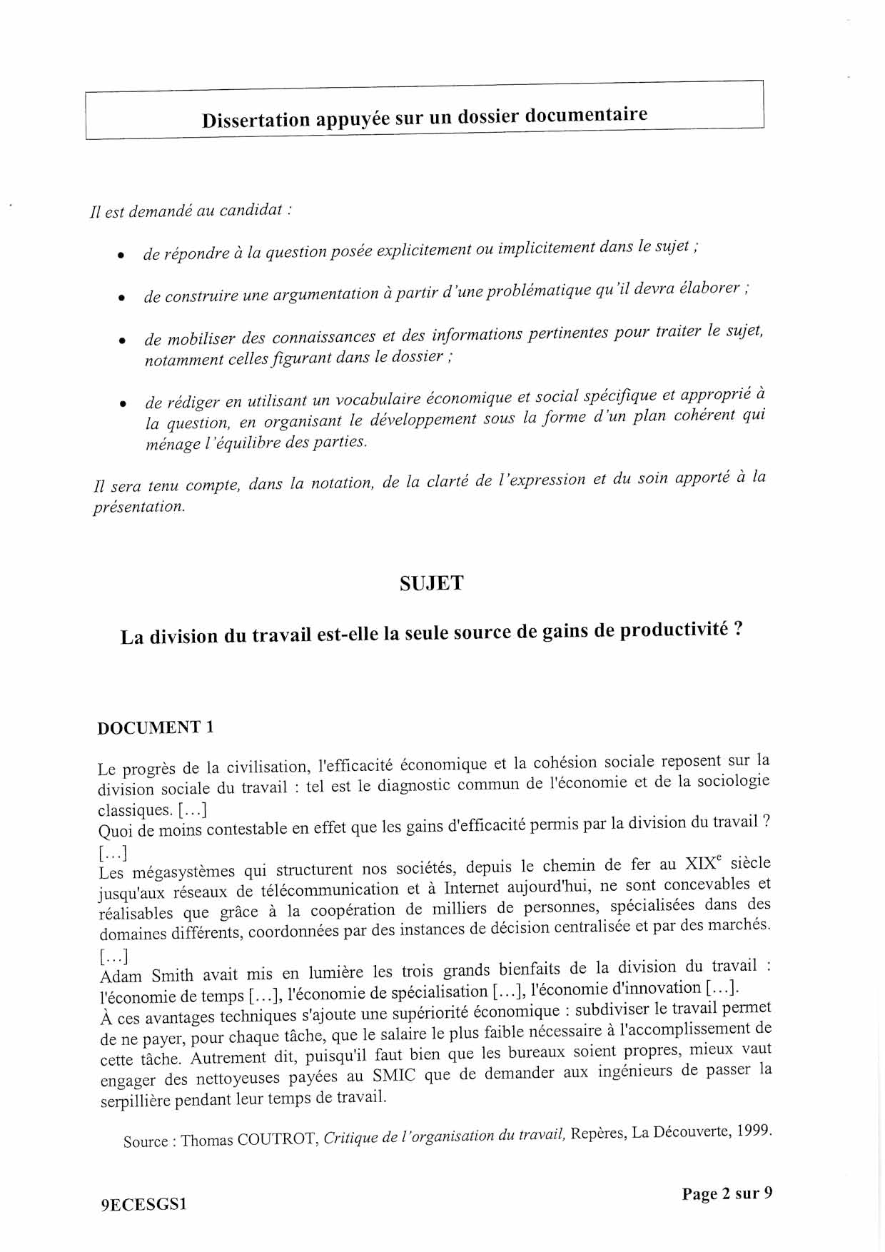 Sciences Economiques et Sociales (SES): Annales Bac ES
