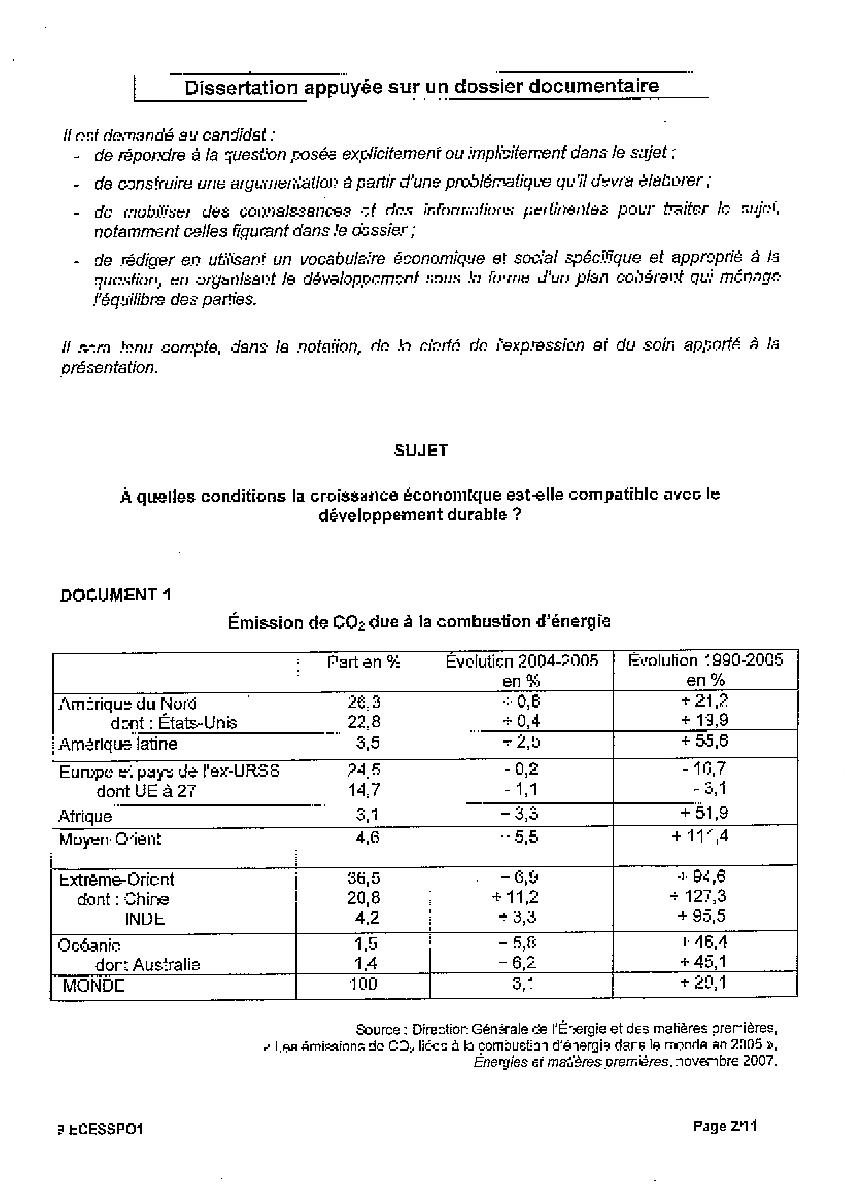 Bac ES Sciences Economiques et Sociales (SES Spécialité) Polynésie 2009 - Sujet