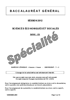 Bac ES Sciences Economiques et Sociales (SES Spécialité) Métropole 2012 - Sujet