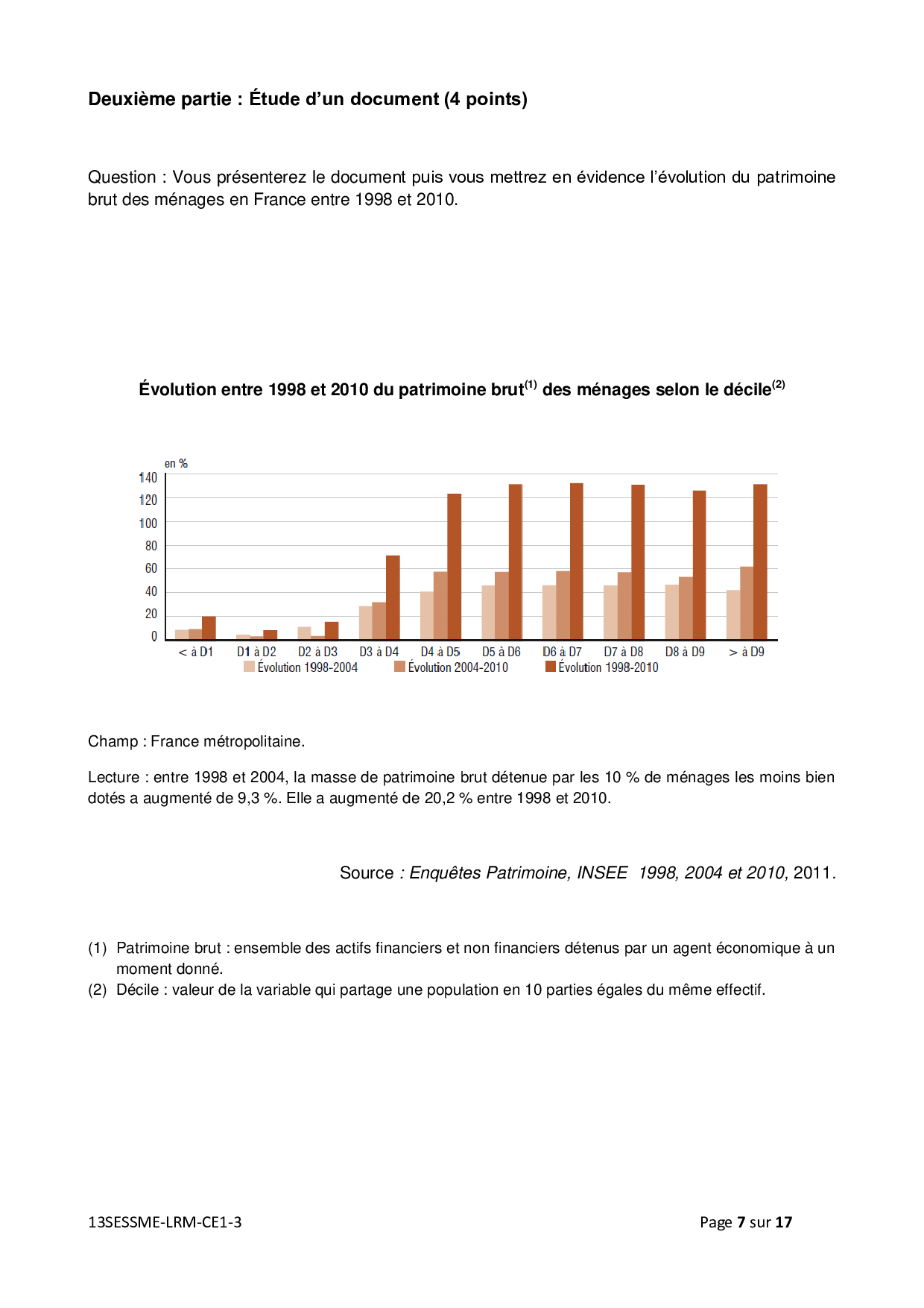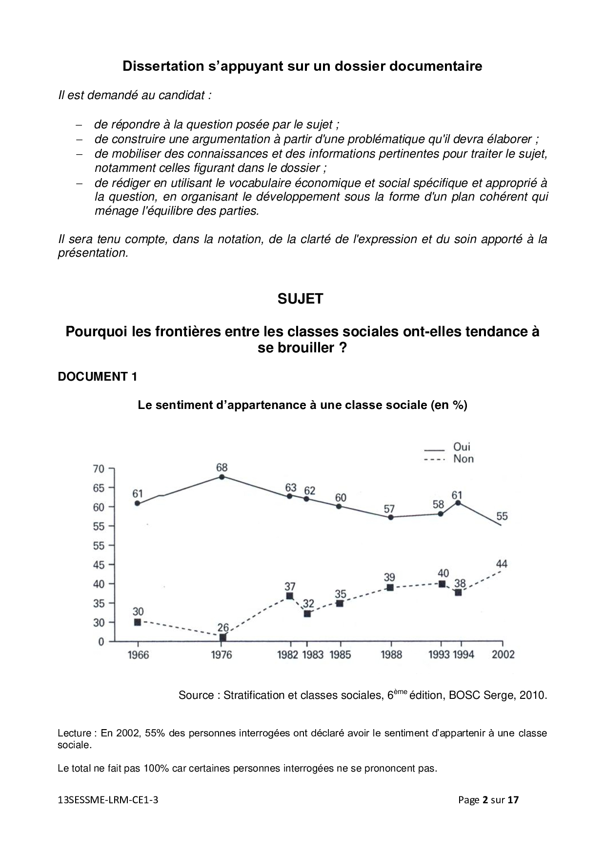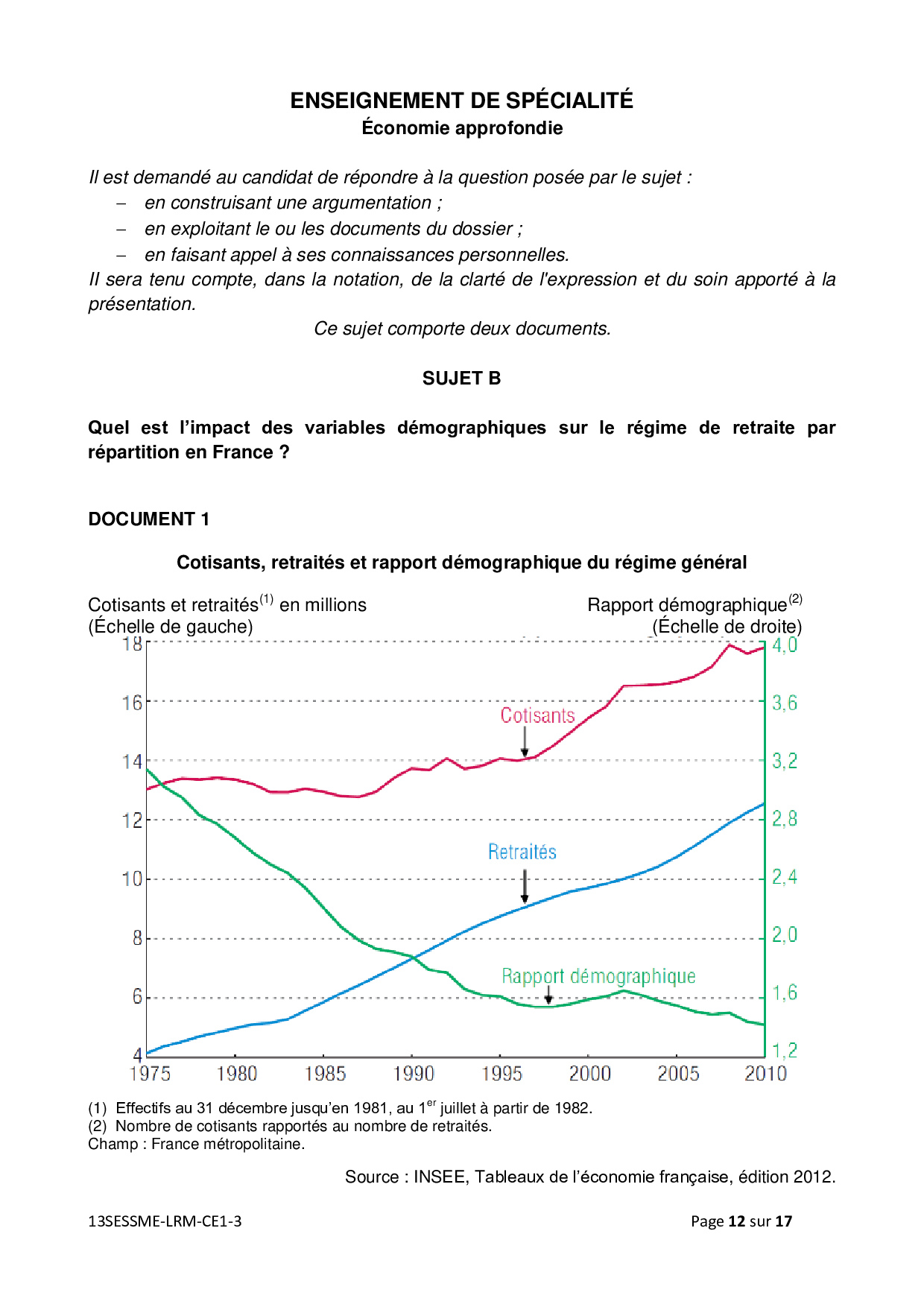Bac ES Sciences Economiques et Sociales (SES Spécialité) Métropole 2013 (Session de remplacement) - Sujet