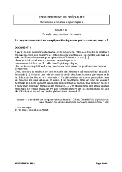 Bac ES Sciences Economiques et Sociales (SES Spécialité) Métropole 2014 - Sujet