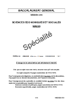 Bac ES Sciences Economiques et Sociales (SES Spécialité) Antilles-Guyane 2016 - Sujet