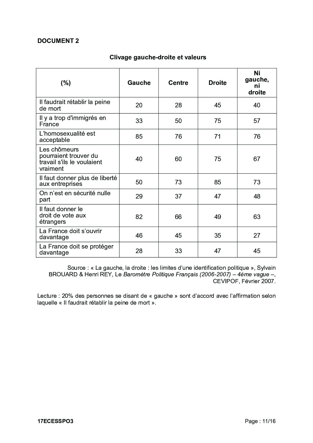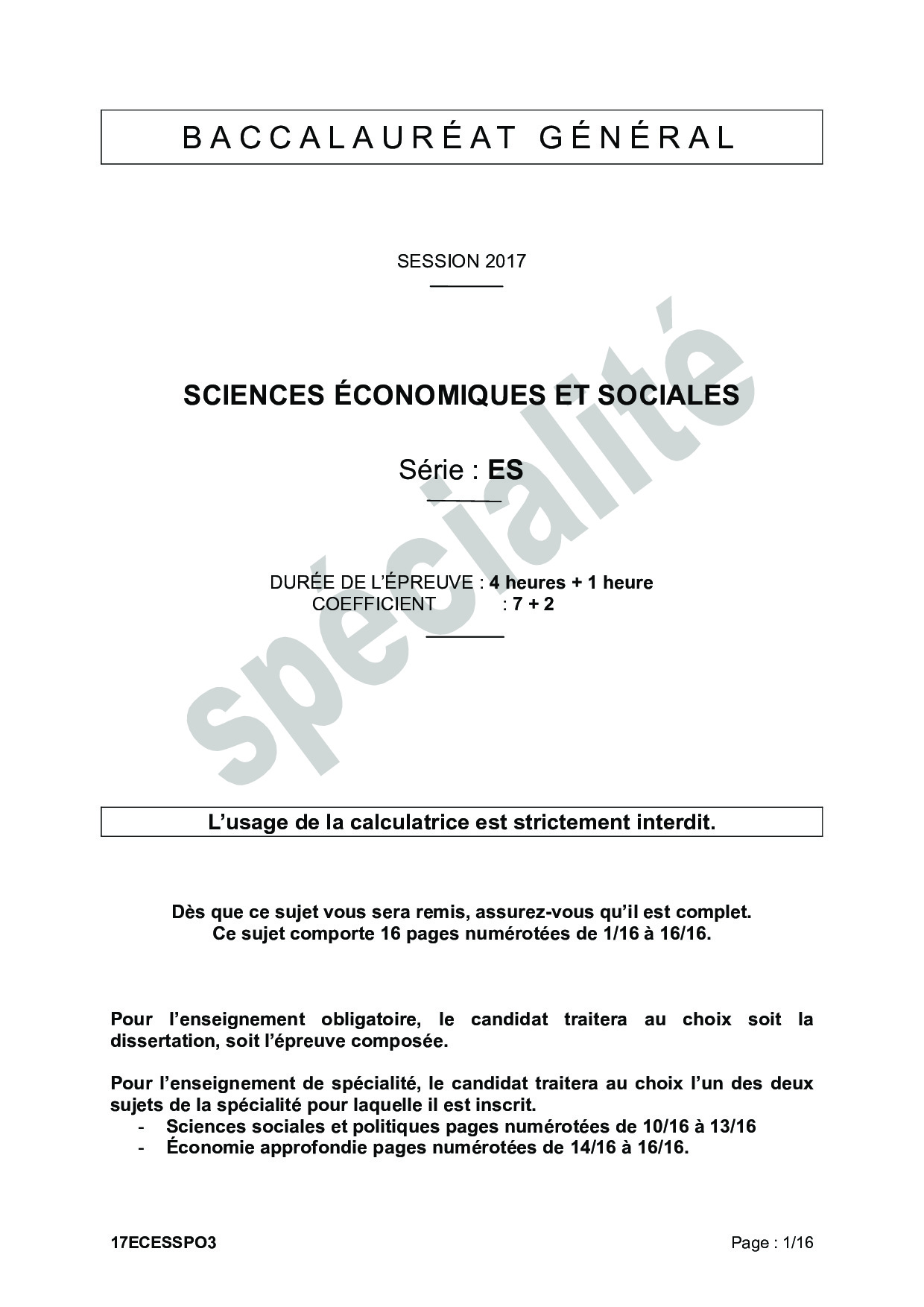 Bac ES Sciences Economiques et Sociales (SES Spécialité) Polynésie 2017 (Session de remplacement) - Sujet