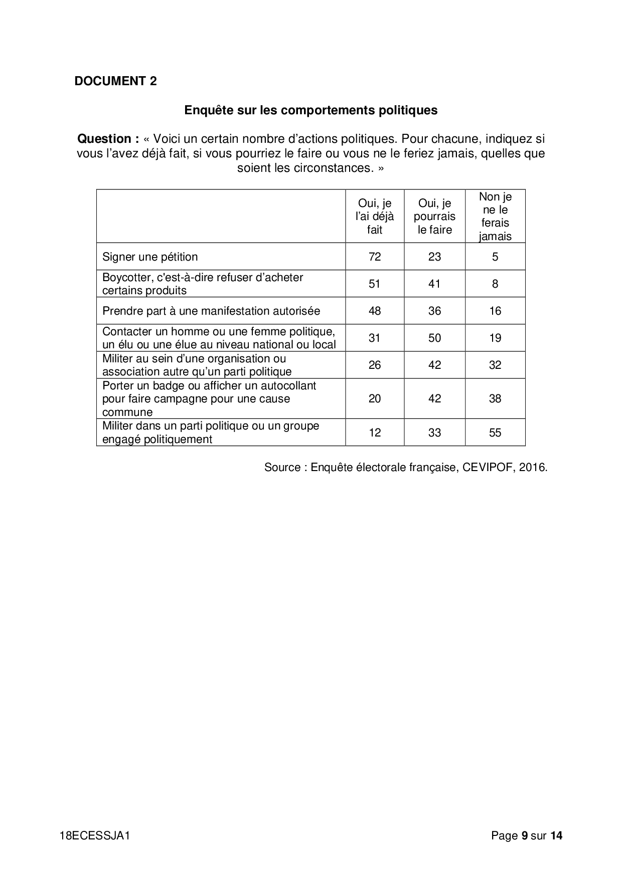 Bac ES Sciences Economiques et Sociales (SES Spécialité) Asie 2018 - Sujet