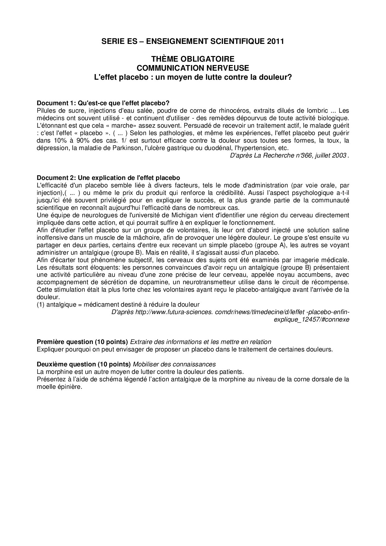 Bac ES Sciences Antilles-Guyane 2011 - Sujet